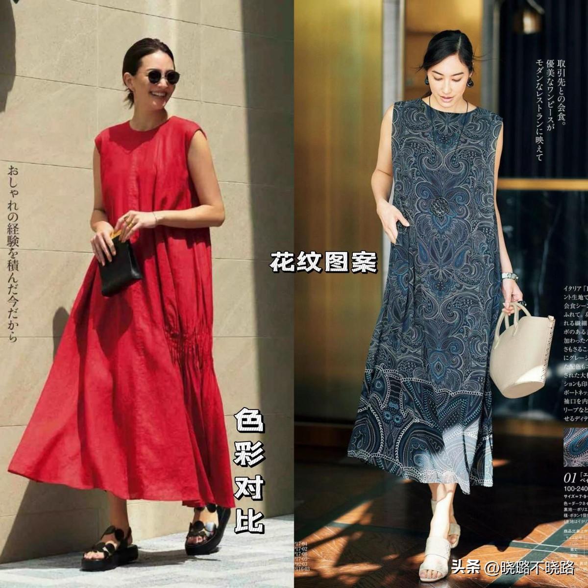 中年女人在搭配連衣裙的時候,一定要考慮到裙子和鞋子之間的對比感。尤其是純色系的闊擺長裙,就應當選擇對比色的平底涼鞋,亮色系和基礎色的碰撞,更具備吸引力。