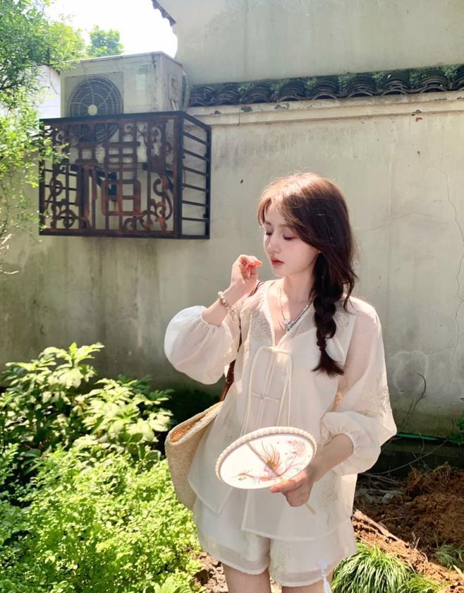 對於不懂搭配,或者是不想多考慮如何穿的姐妹,套裝是最合適的選擇,這一身新中式套裝,看起來也太好看了,有種很淡雅清新的既視感,上下都是寬鬆的版型,也太藏肉顯瘦了。