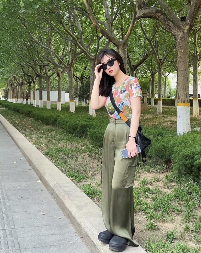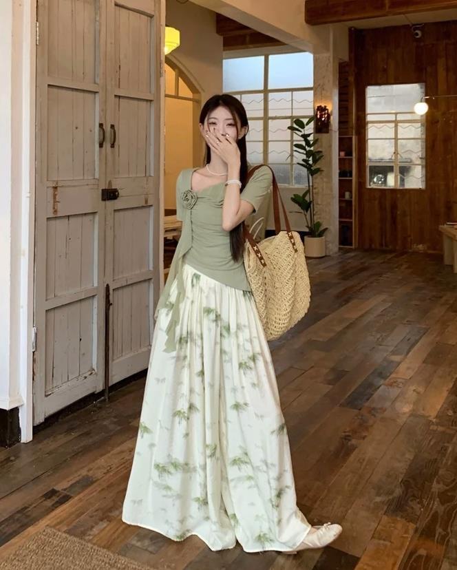 這一套新中式穿搭,真的是美到我心巴上了,不規則短袖t恤+國風印花半身長裙,有種甜辣小清新範,淺淺的綠色,真的和夏天太般配了,這種清冷的氣質簡直不要太美了。