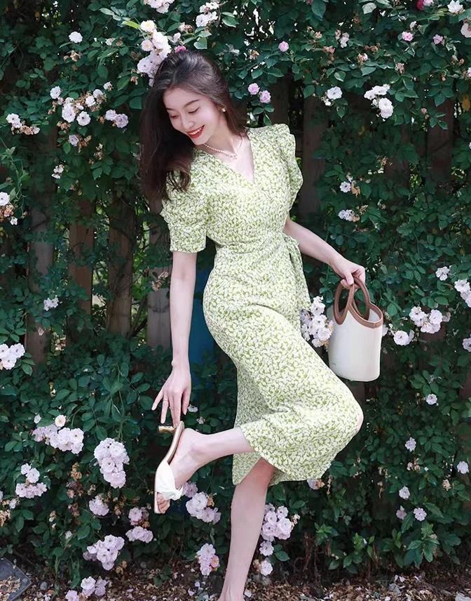 這個夏天,真的是被格林系風格穿搭吸引住了,清新的綠色調調,很襯膚色和顯白,小碎花的茶歇裙,自帶氣質和浪漫氣息,深v領+收腰的設計,穿起來可太顯瘦了。出門踩着一雙拖鞋就很美了。