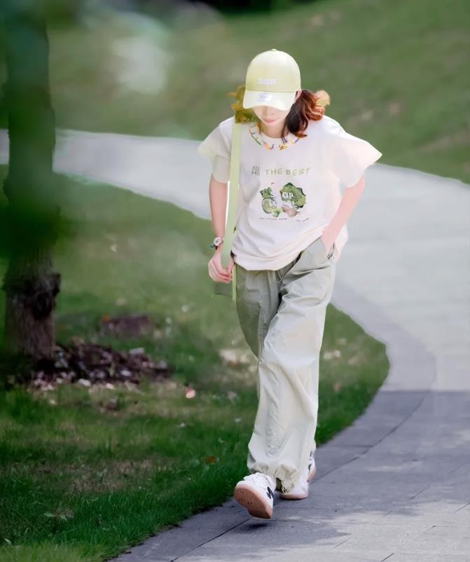 充滿少年感的穿搭,瞧着就非常減齡又有活力,清爽的格林系穿搭,盛夏季節,就是要爲自己來點清新的綠色,這樣才能讓你在視覺上呈現出降溫的效果。上下衣服的版型都是寬鬆的,鬆弛感十足。
