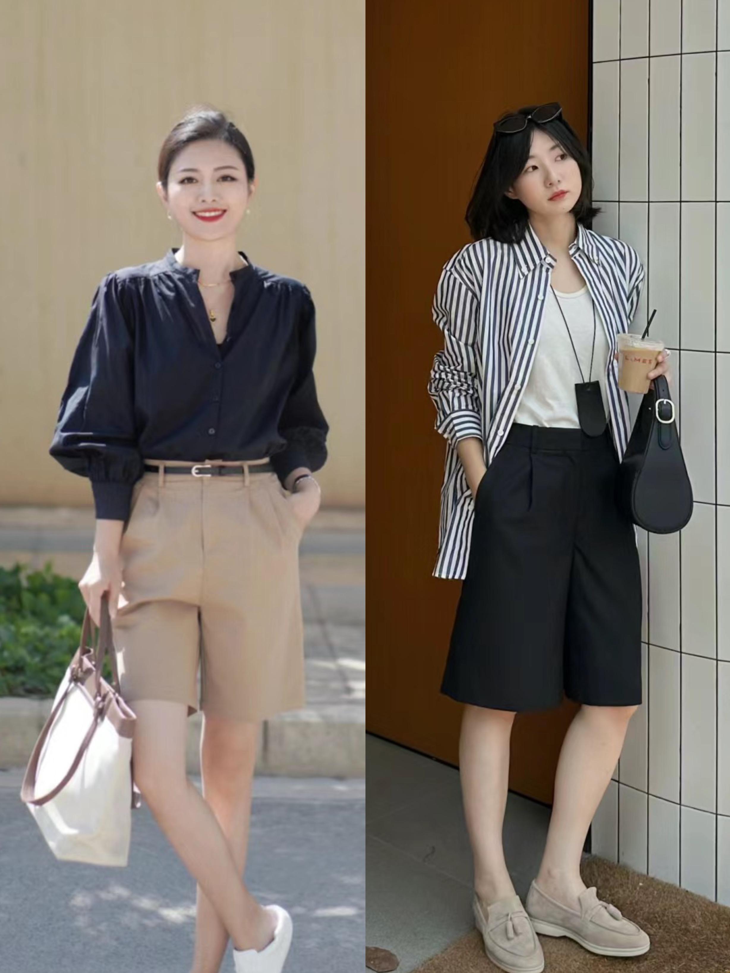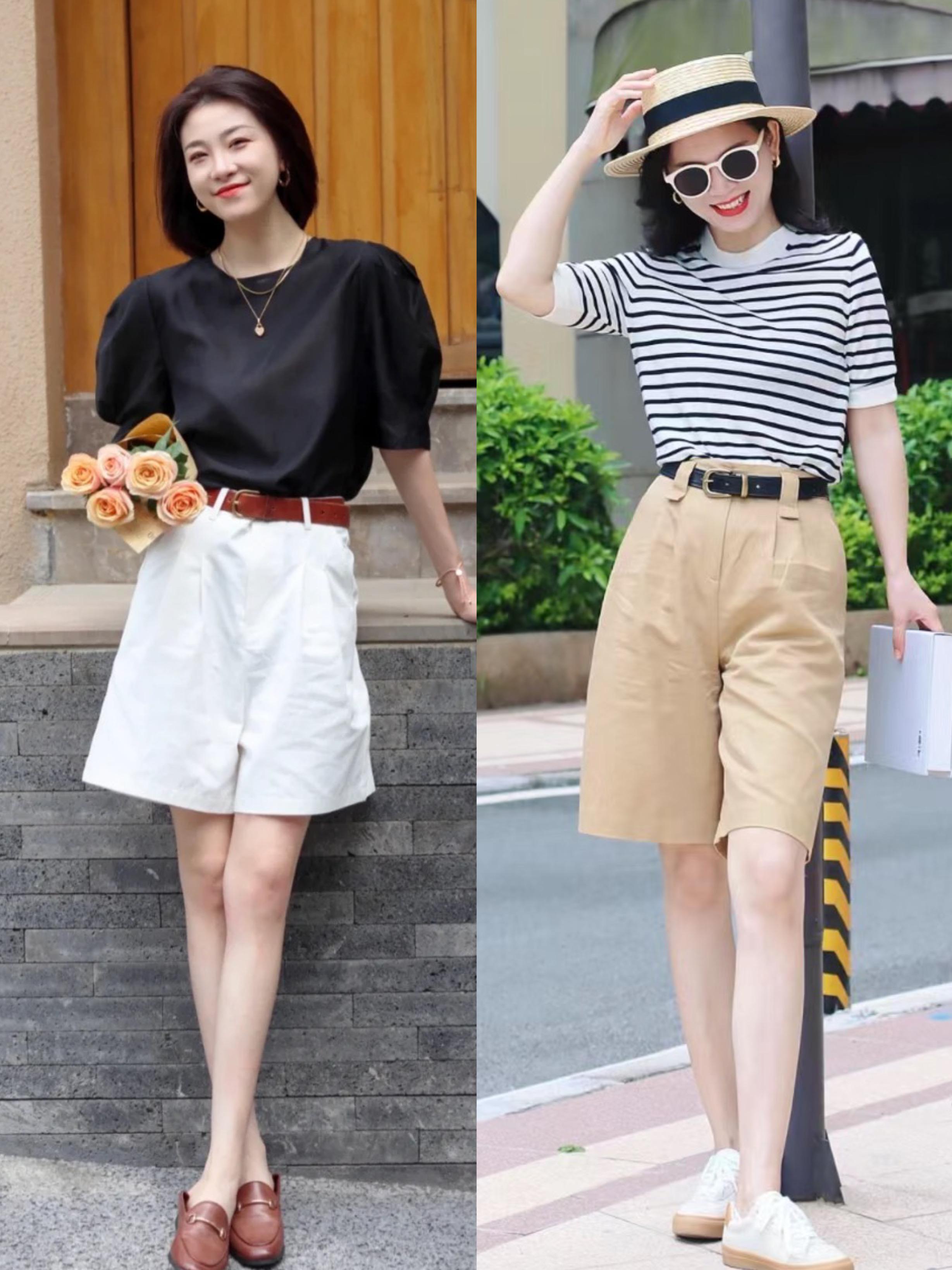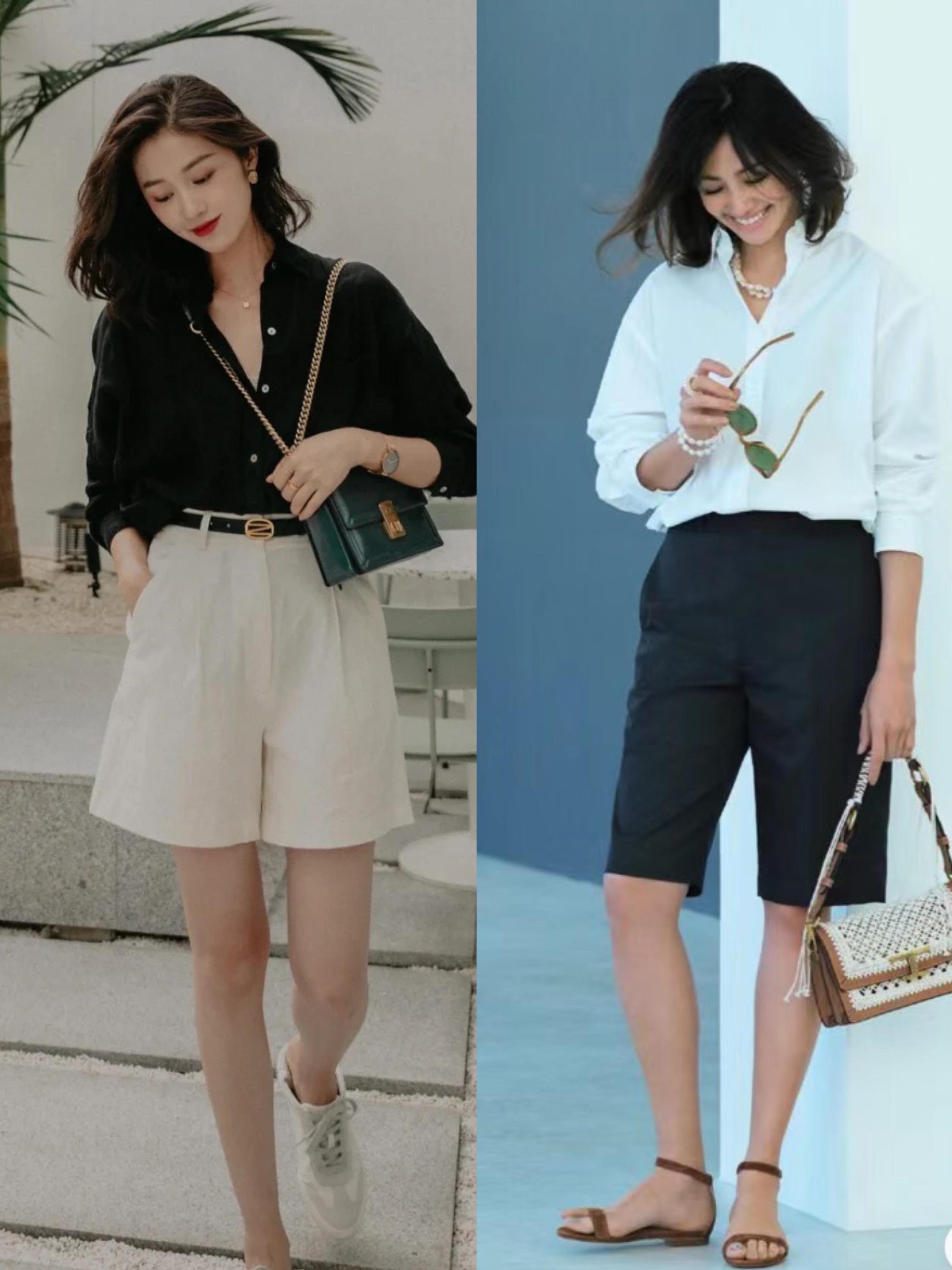 夏天裏的百慕大中褲,最常見的是黑色、白色、卡其色,這三種高級色、也屬於中性色,百搭顯氣質還不挑人。