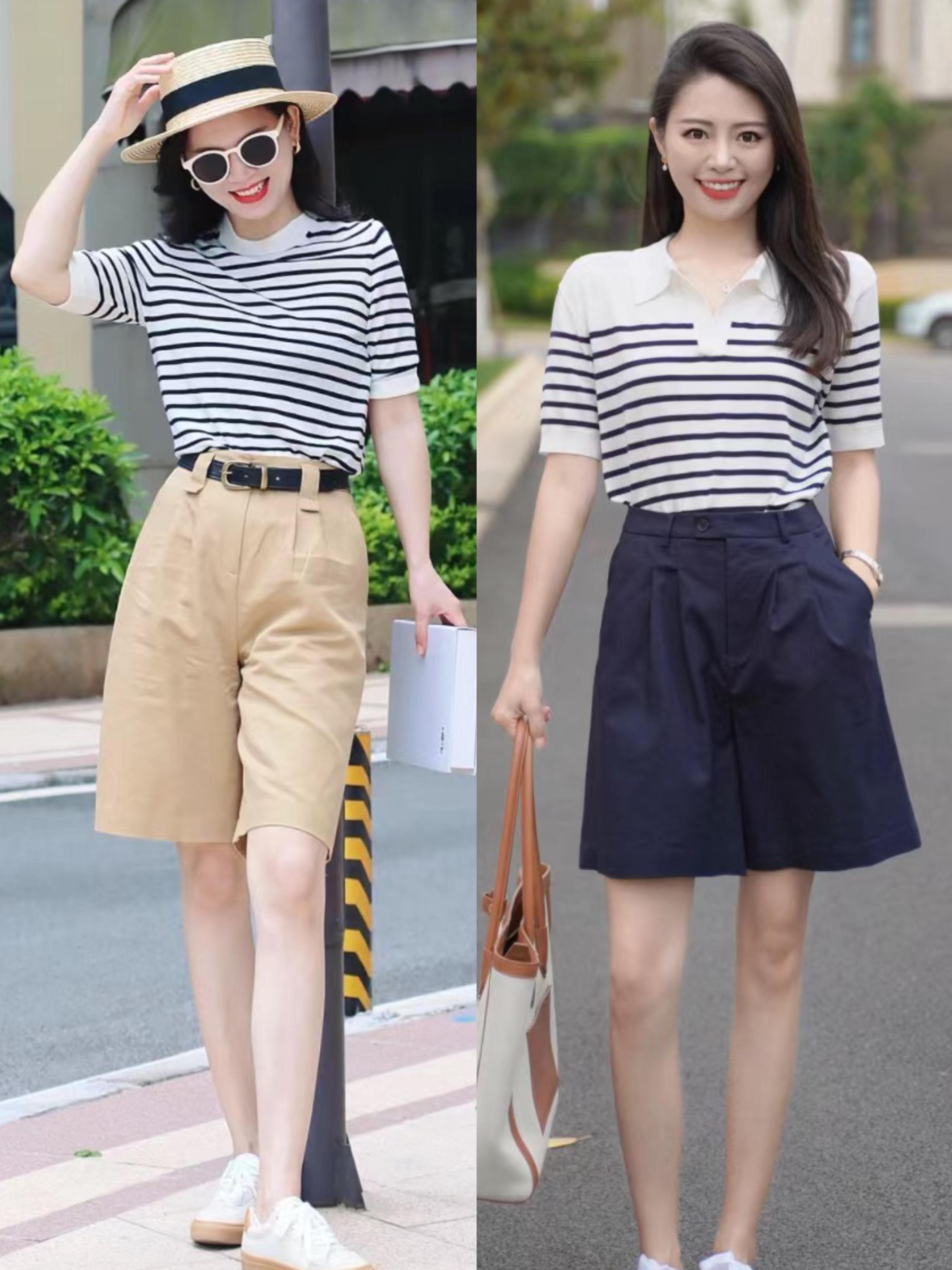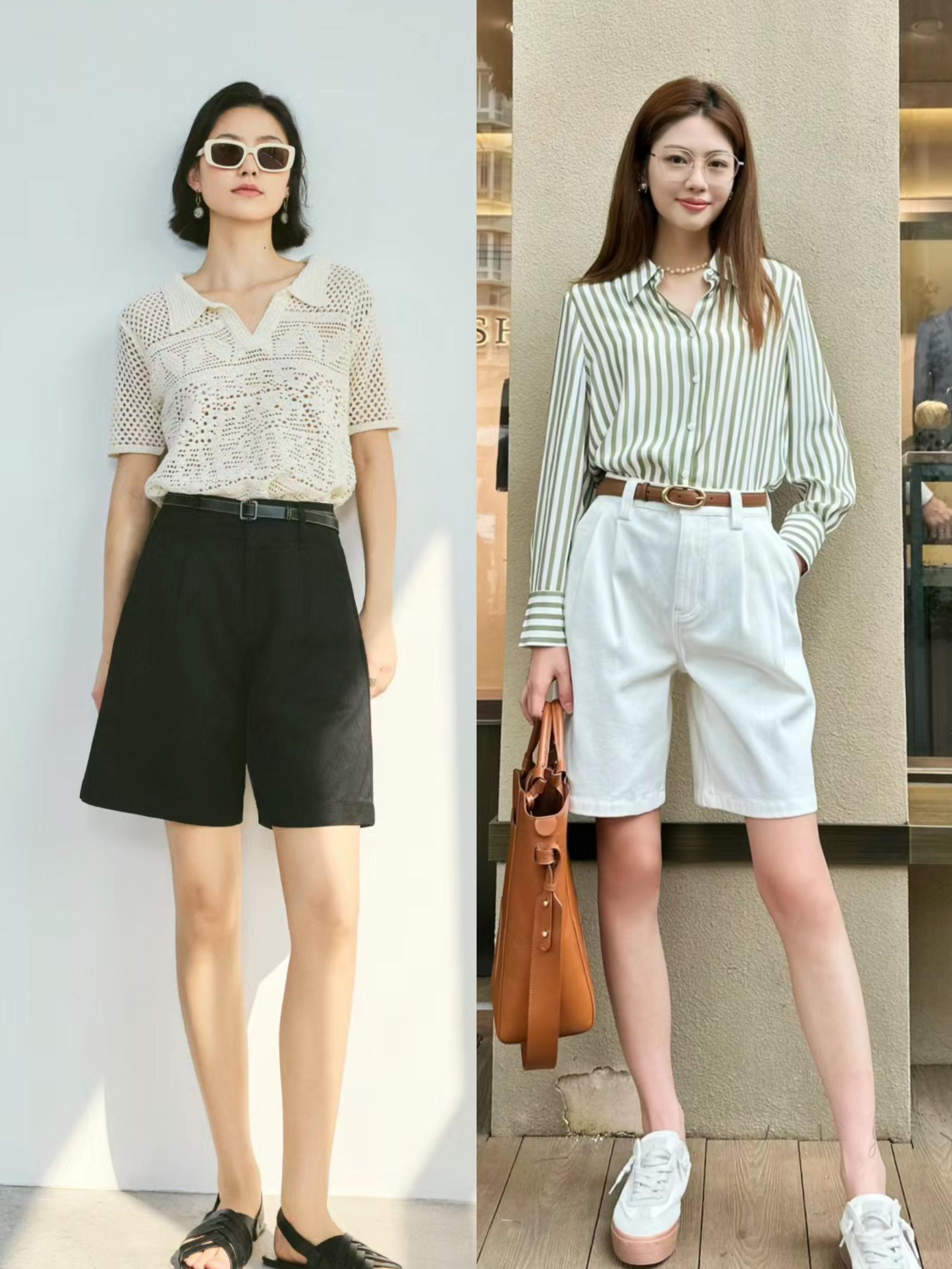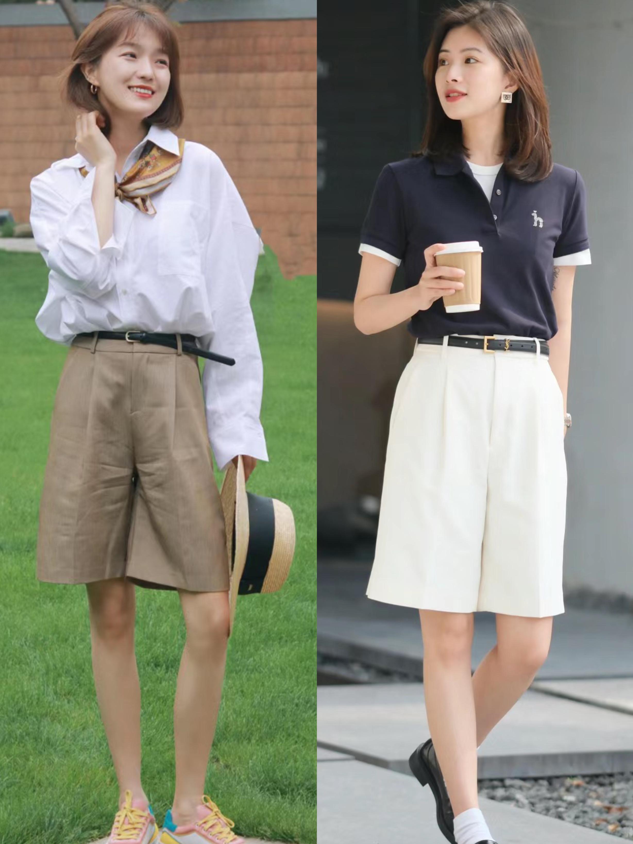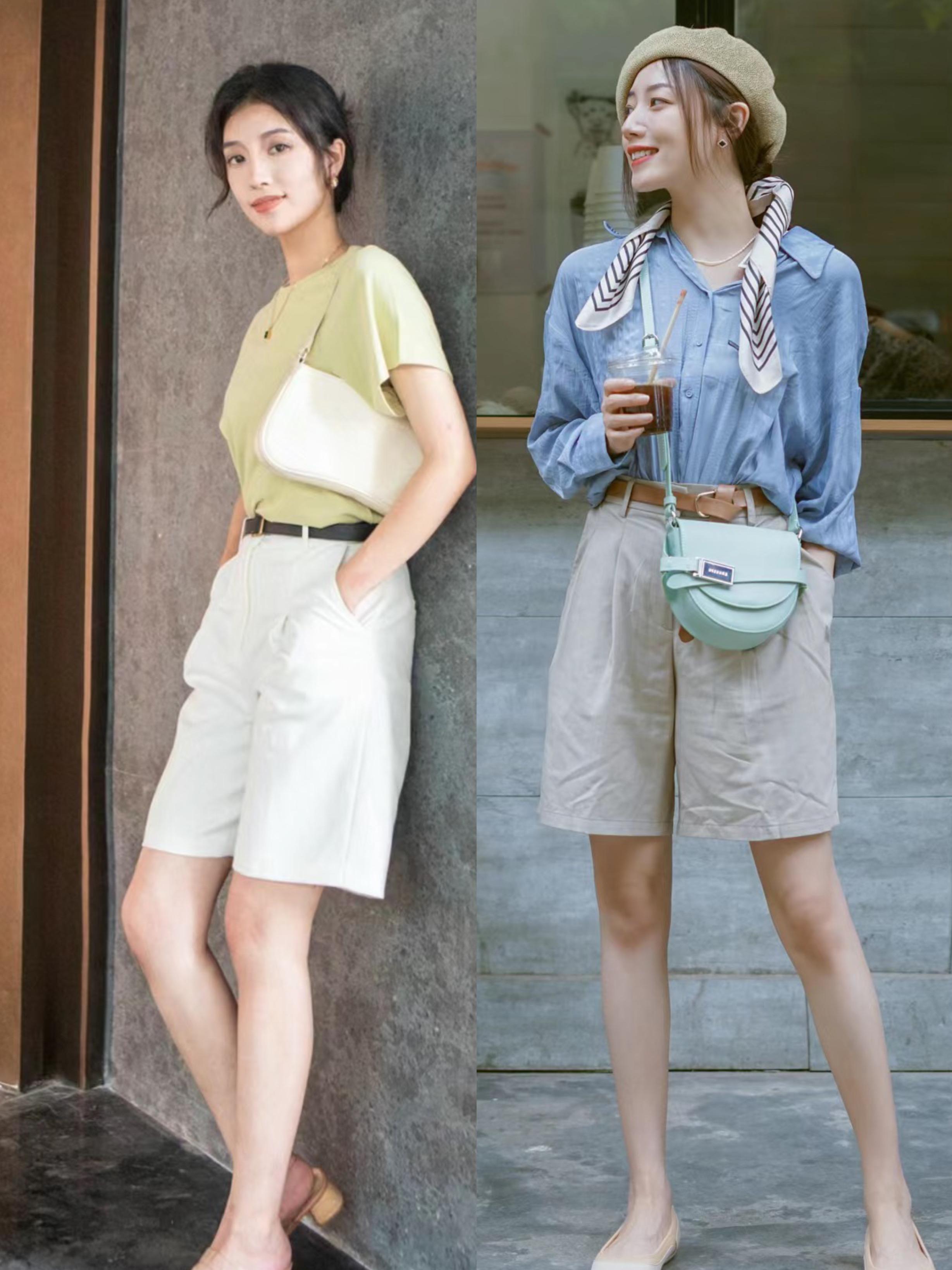 夏天裏的百慕大中褲,最常見的是黑色、白色、卡其色,這三種高級色、也屬於中性色,百搭顯氣質還不挑人。