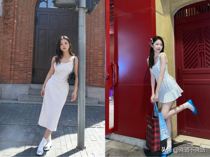 這一套穿搭是少女感十足的搭配,這一套穿搭主要是要注意足下搭配,因爲短裙露腿,爲了完善造型的層次感,我的建議是選擇短襪或者長襪來做鞋子和腿部的銜接,讓穿不那麼突兀。