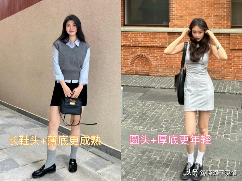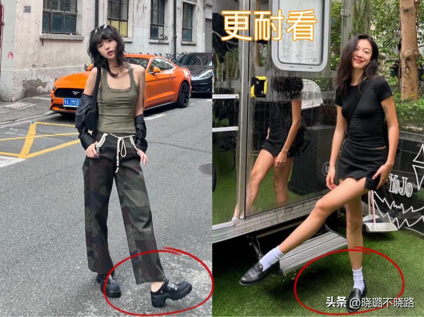 但是和德訓鞋相比,樂福鞋會顯得更加“隆重”,所以穿樂福鞋也會讓我們的造型看起來更加精緻,樂福鞋更適合一些淑女、少女的造型穿搭。