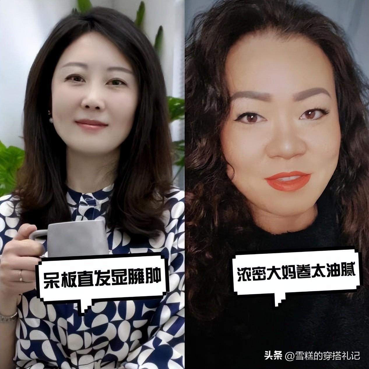 髮型也是影響我們整個人形象的關鍵部分,時候即便我們穿搭和妝容都非常的精緻,但是髮型選錯了也會分分鐘拉低你的顏值。大家儘量不要選擇太濃密的大媽卷燙髮,看起來格外的膨脹臃腫。同時也不建議大家選擇貼頭皮的黑長直,完全暴露了臉部的缺點,顯得人又老又土。