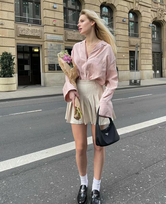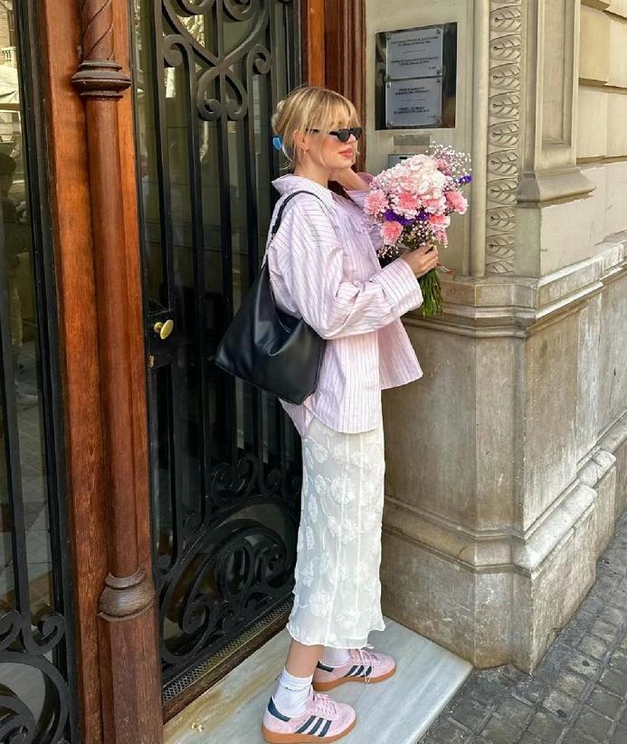 Linda博主是我見過最會穿的博主了,她很擅長選擇一些基礎款的單品來穿搭,粉嫩顏色的條紋襯衫,寬鬆的版型,直接作爲防曬衣來穿最合適了。在裏面疊穿一件白色小背心吧,可太時髦休閒了。白色半身長裙的加入,又爲整個穿搭增添了幾分溫柔氣息。