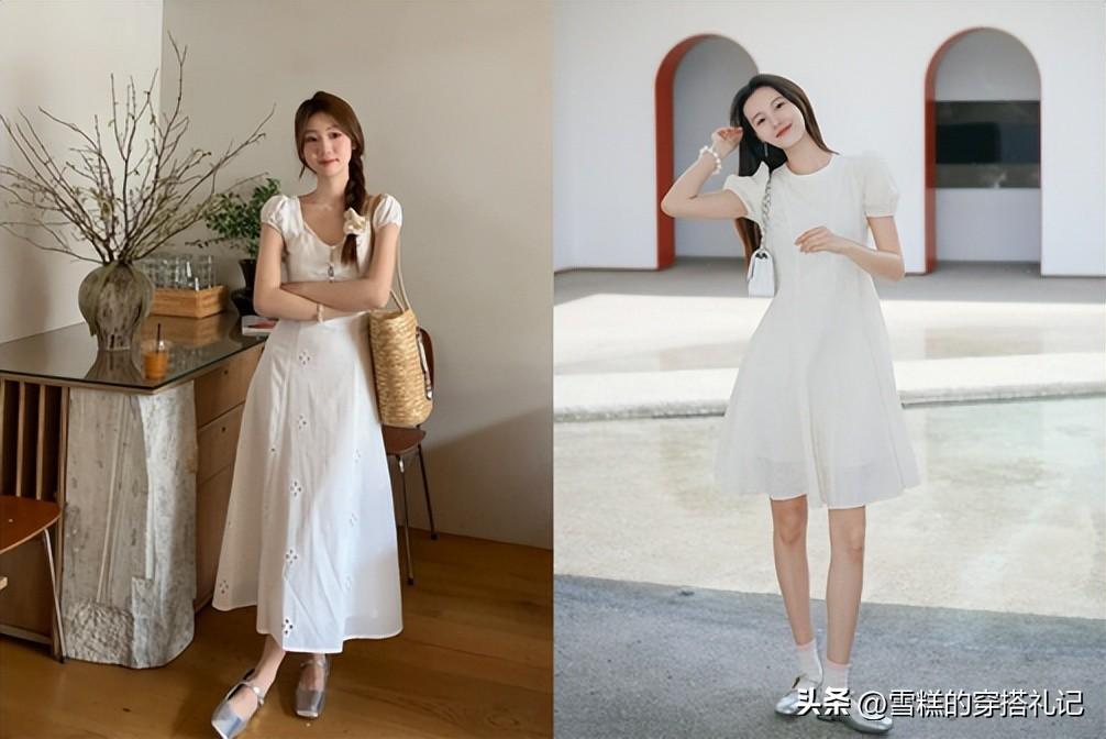 今年夏季銀色奶奶鞋最出圈的方式,是和白裙子搭配,它走在人羣中是高回頭率的穿搭,但是不會顯得突兀扎眼,是能給人溫柔和親切感的。白裙子有連衣裙寬款式,也有半身裙,想輕裝上陣就選連衣裙,搭配更獨特有個人風格,半身裙更佳。