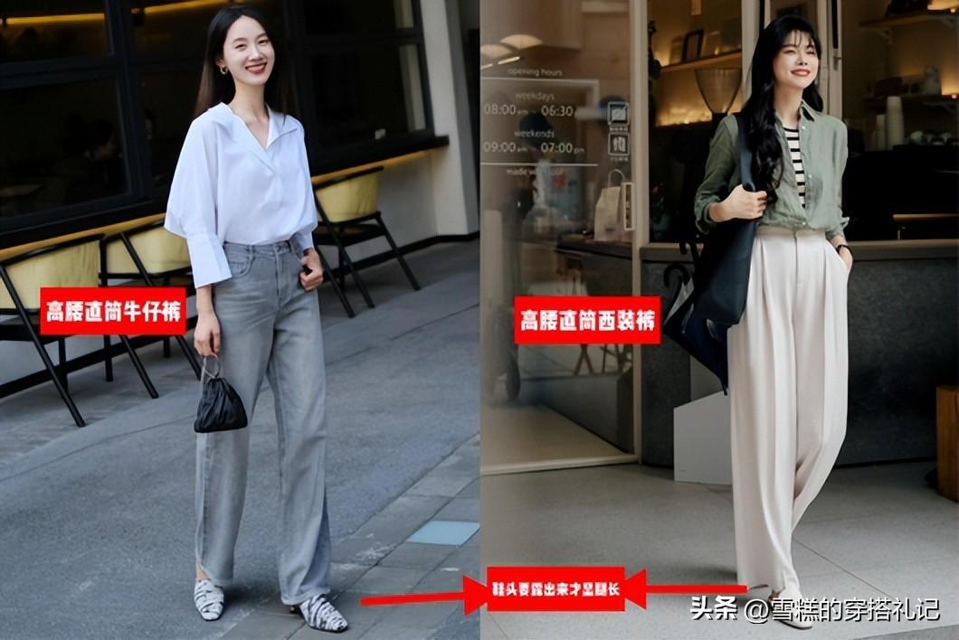 穆勒鞋的下裝搭配選褲裝比裙裝更合適,褲子採用全分且高腰直筒的款式,能馬上打造出一米八的大長腿。高腰直筒褲的穿搭是多樣化的,不同材質有不同風格,穿高腰直筒牛仔褲是瀟灑帥氣女人,穿高腰直筒西裝褲是大氣高級女人,這兩款褲子褲腿都要自然垂下,褲腿不要蓋住鞋頭,露出來才能真的顯腿長。