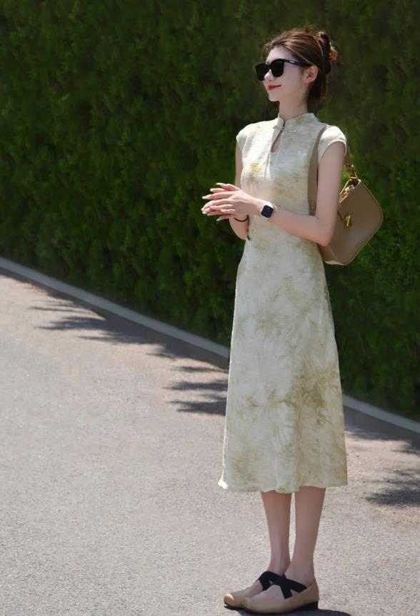 入夏的穿搭,還得是新中式啊,簡簡單單就非常顯溫婉氣質,不想在搭配上花費太多心思的,可以直接選一條連衣裙,新中式的連衣裙,看起來真的超美的,鞋子選擇一雙芭蕾單鞋,太舒適自在了。