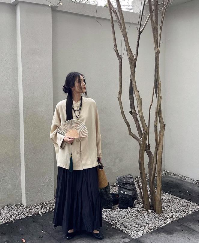 清冷的白月光新中式穿搭,很低調溫婉的配色,一整個給人的感覺就是非常氣質,上衣的設計很簡約,選擇棉麻材質的半身長裙,悶熱感的夏日穿這麼一條裙子,透氣性真的超讚的,選擇一雙高跟鞋,輕鬆打造出氣質感。