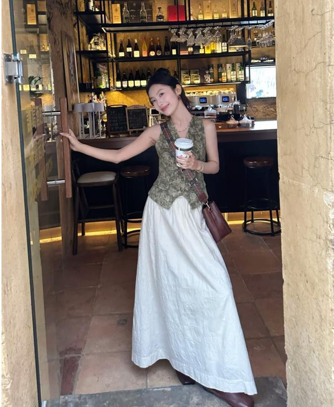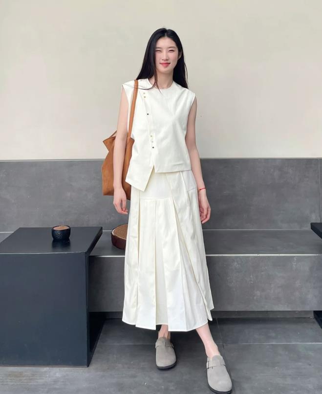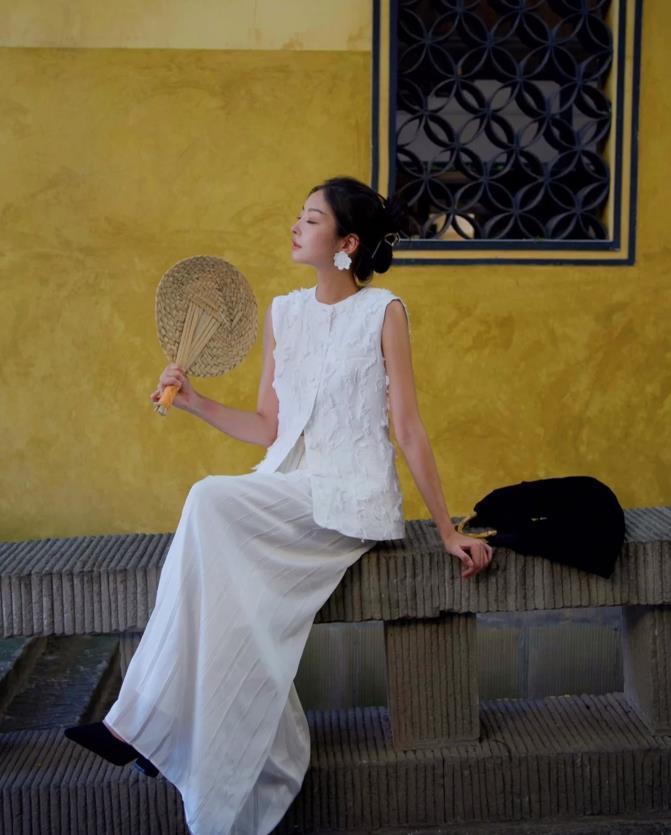 夏天,還是最愛白色,感覺這個顏色自帶降溫效果,中式老錢風,喜歡的姐妹不妨試試看,馬甲的設計,比較追求細節,下身搭配的半身長裙,垂墜感是極佳的,可以讓你看起來很瘦,適當加入一些配飾點綴,就很吸睛。