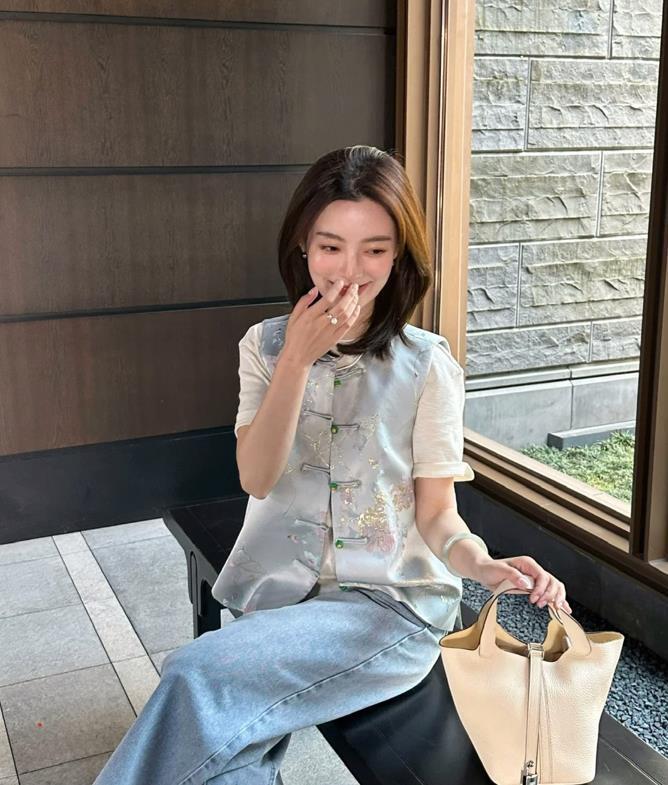 挺不失日常的一套,極簡新中式搭配,這一件提花的小馬甲真的很注重細節感,也非常好穿,復古又不失氣質。可以單穿,也可以在裏面疊穿一件短袖,休閒隨意。搭配起一條直筒牛仔褲,也太顯瘦了。