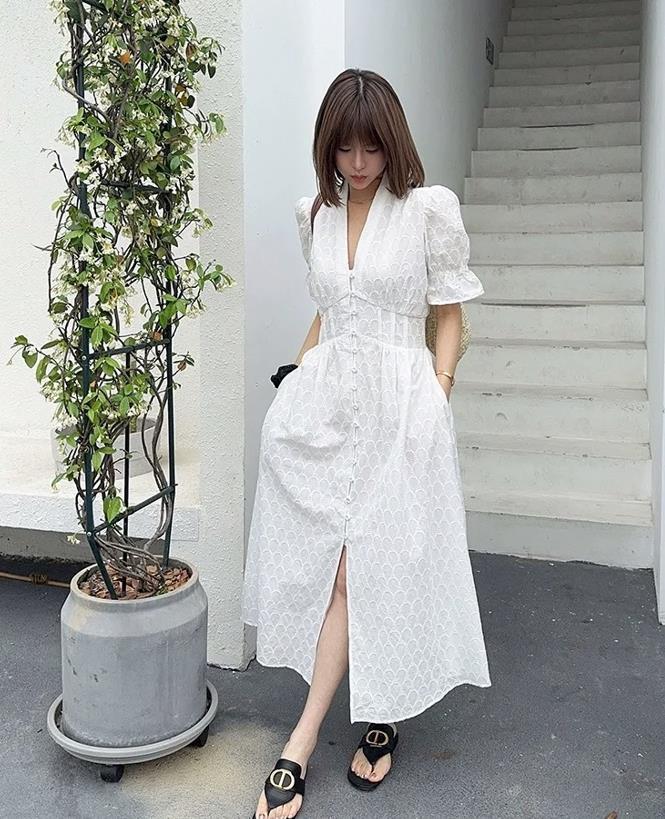 在日常休閒場合裏,茶歇裙的款式更應該注重下版型,寬鬆舒適的款式,能讓你穿得更輕鬆自在,搭配一雙平底涼鞋,或者是一雙平底單鞋都行,如果是去度假的話,可以再適當佩戴一頂草帽,增加魅力又遮擋紫外線。
