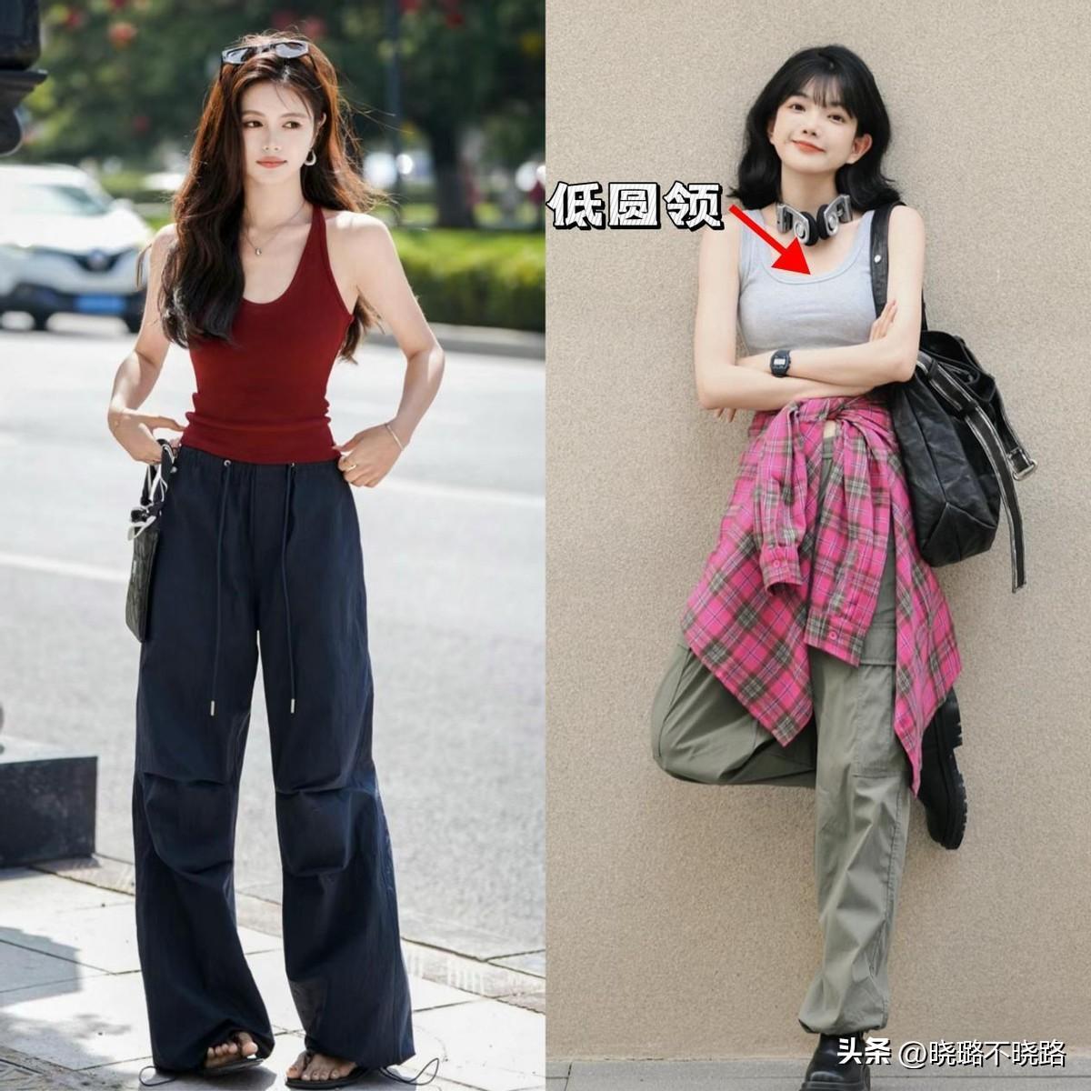 搭配方案2.工裝褲+低領背心