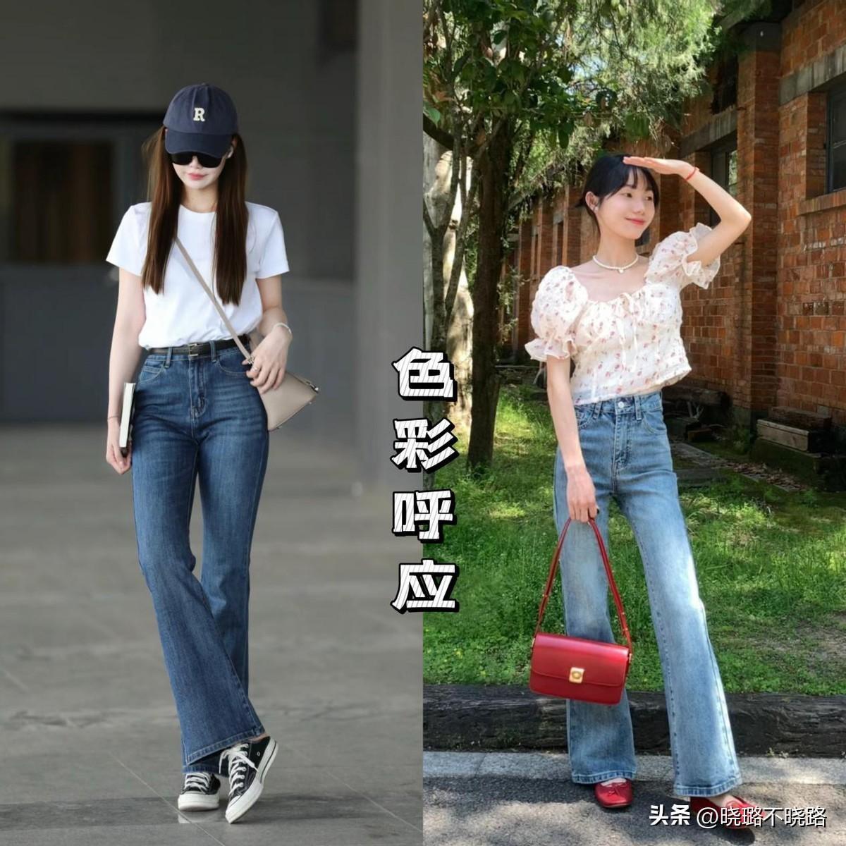 跟近兩年流行的馬蹄褲比起來,傳統的喇叭褲還是更經典一些,寬窄適度的褲型設計,既能夠達到遮肉的效果,還具備很好的時髦感。