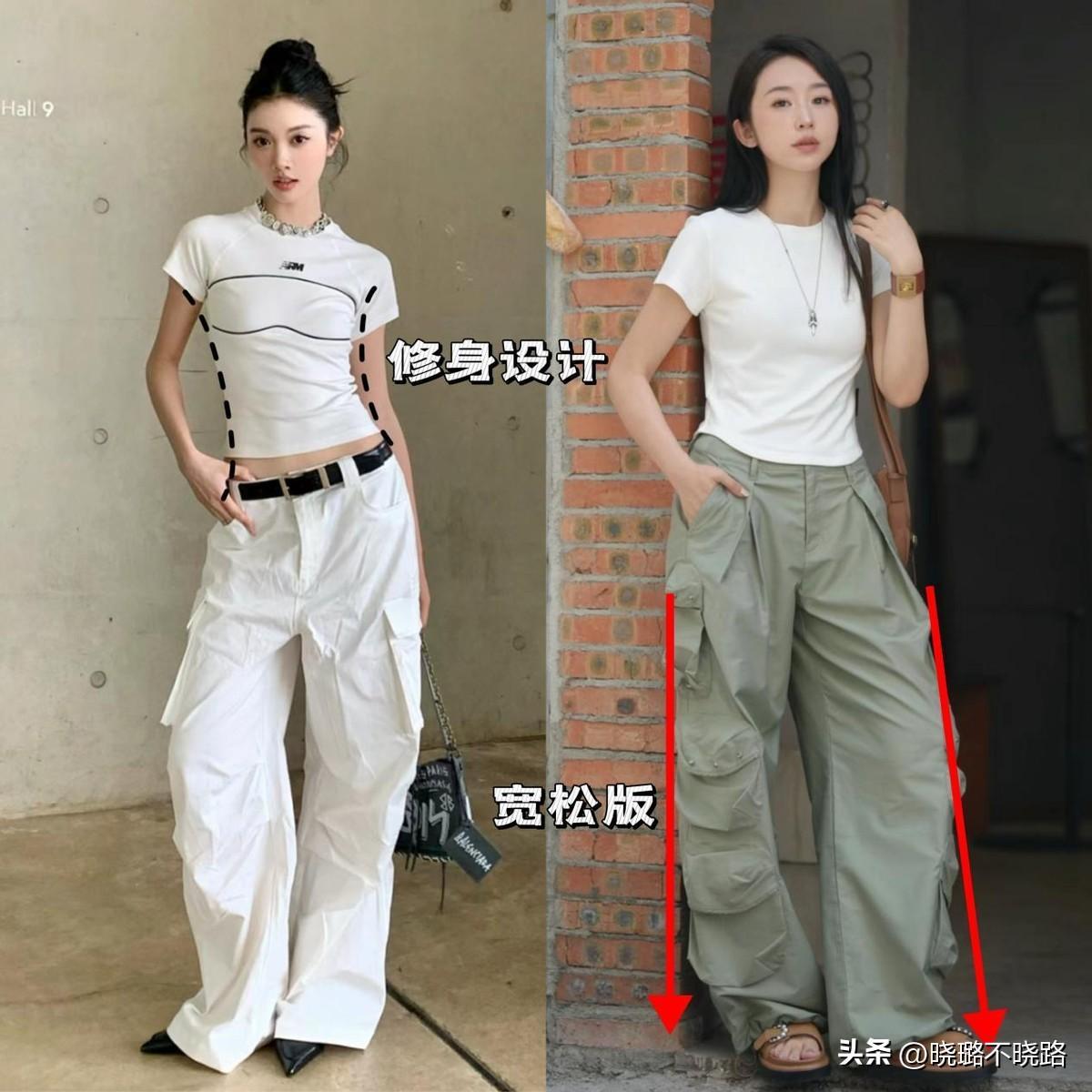 普通女孩哪有明星般的身材,大多數都會有一些身材上的bug,所以在挑選褲裝時,應當優先選擇闊腿褲,比如今年很流行的工裝闊腿褲,提臀顯瘦還特別遮肉。