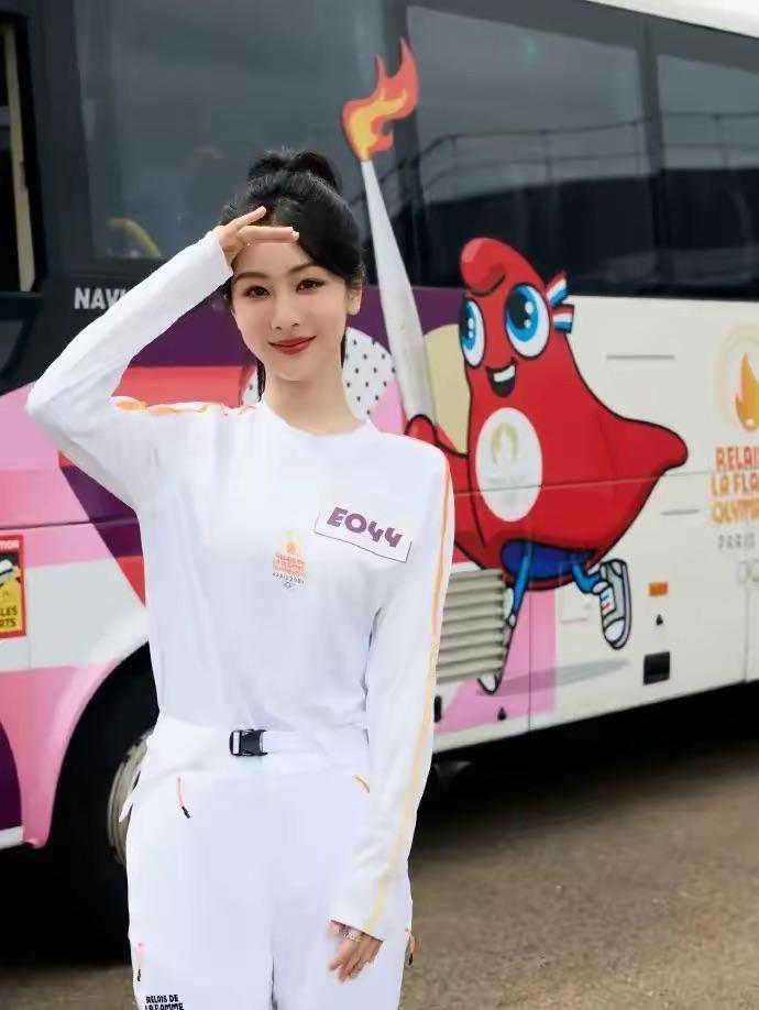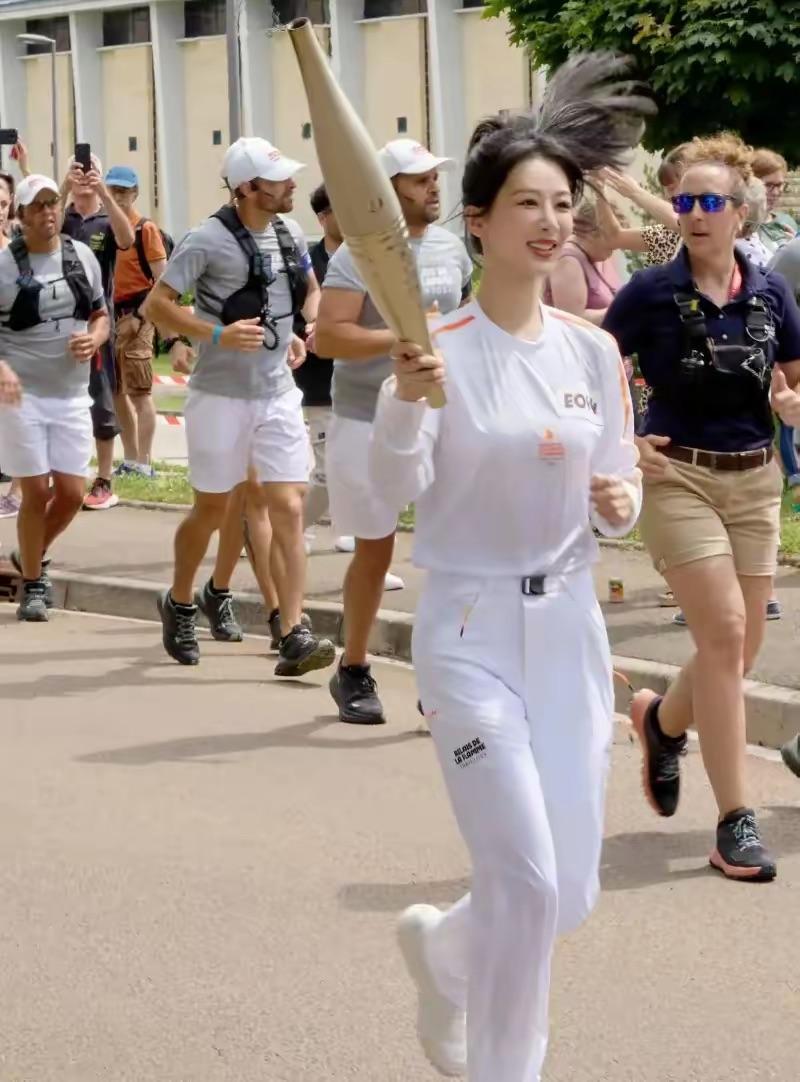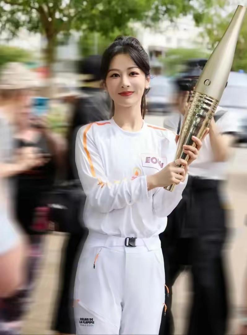 楊紫厲害了,擔任巴黎奧運火炬手,穿白色套裝扎高馬尾似初戀女神