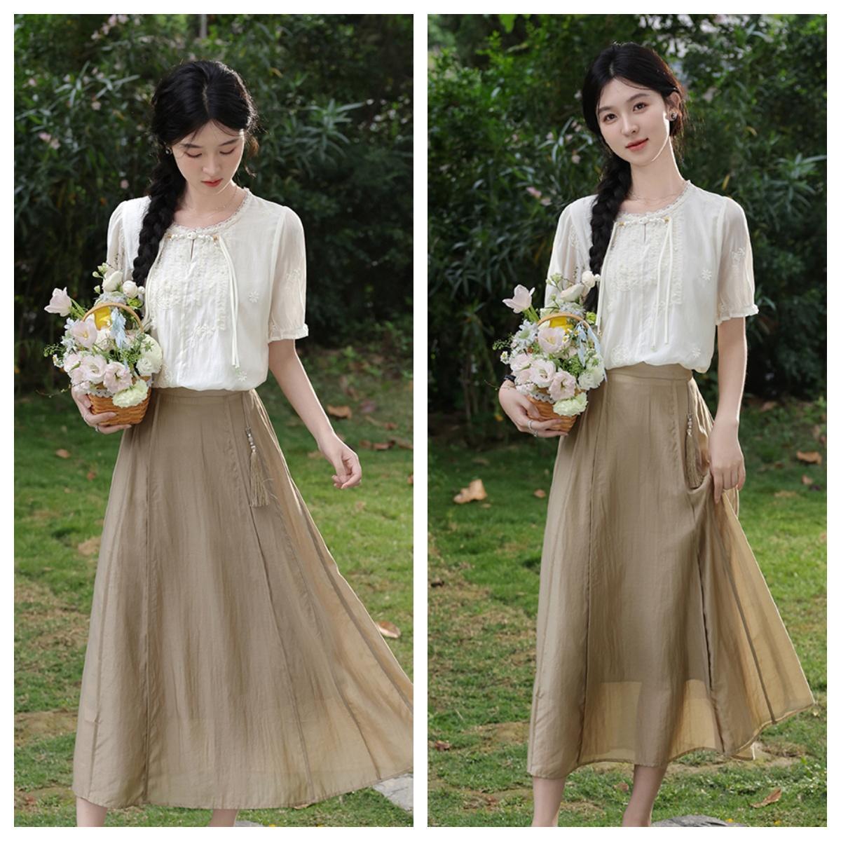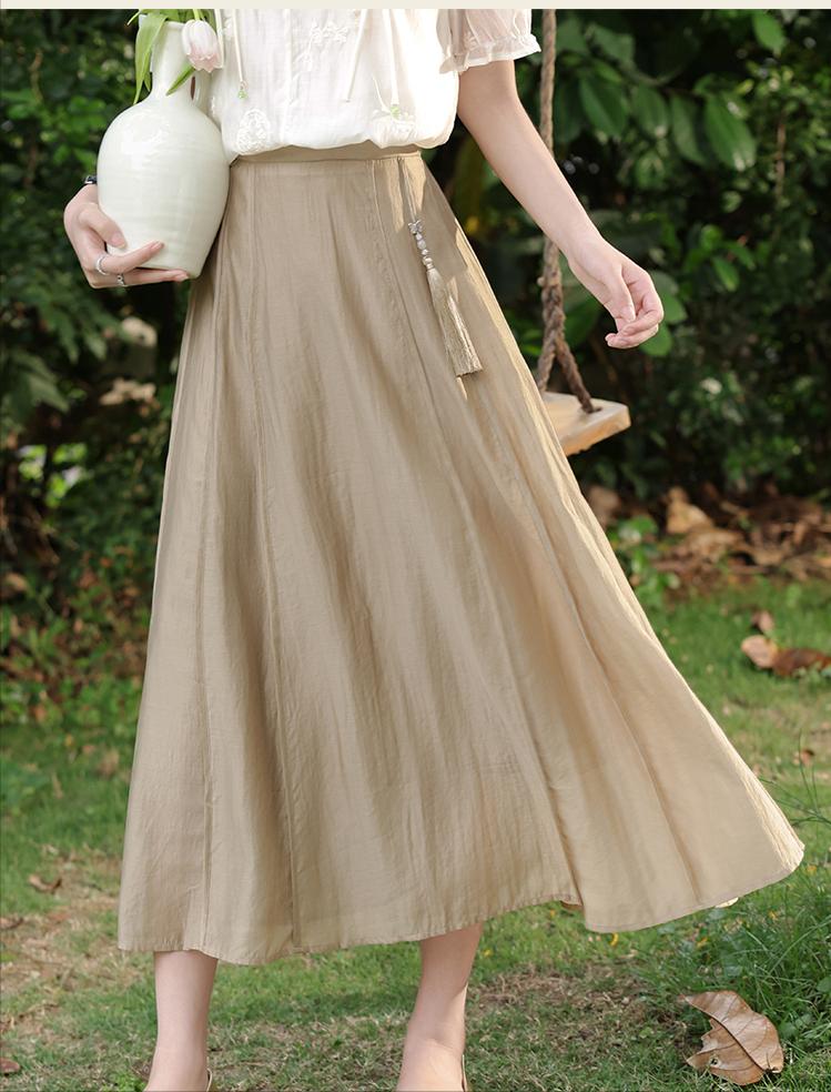 設計亮點:這款半身長裙採用高腰設計,有效遮住腹部和大腿的贅肉。