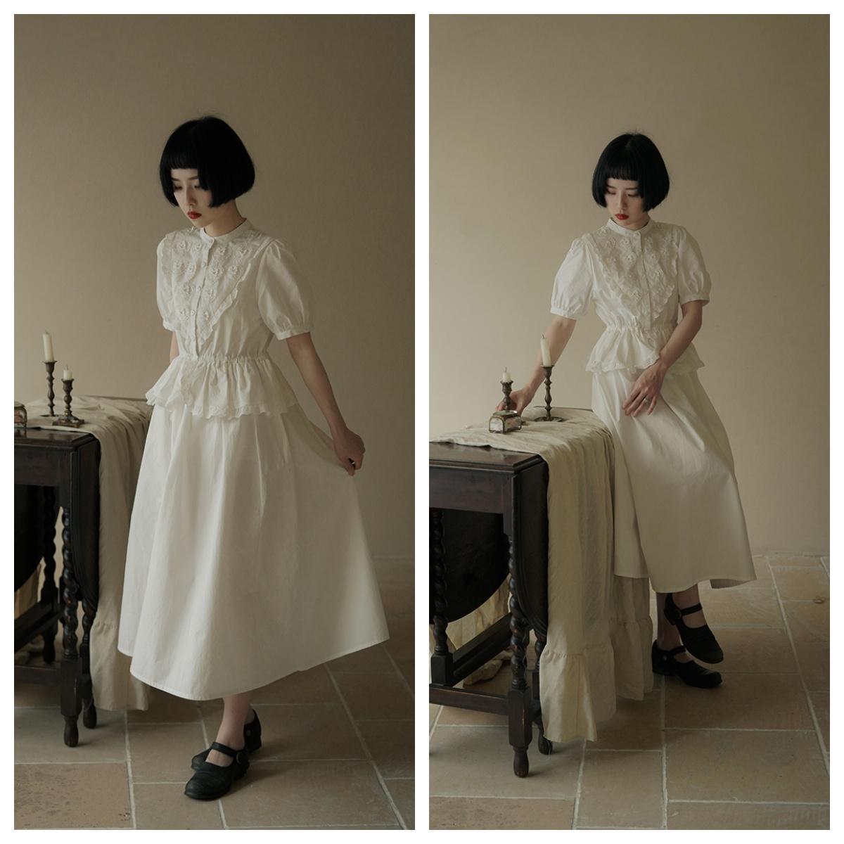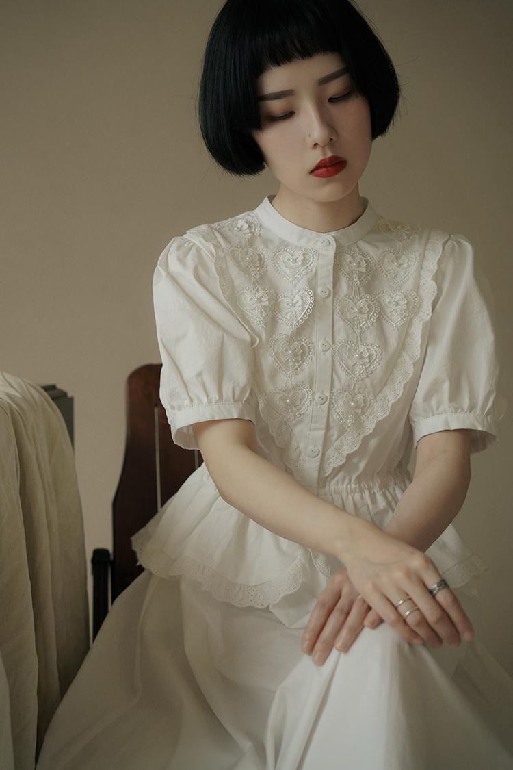 設計亮點:這款小白裙裙以其簡約的剪裁和優雅的花邊愛心擺突出女性曲線美。