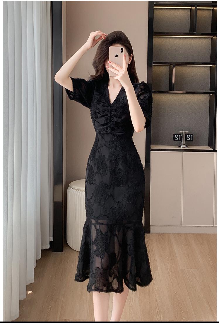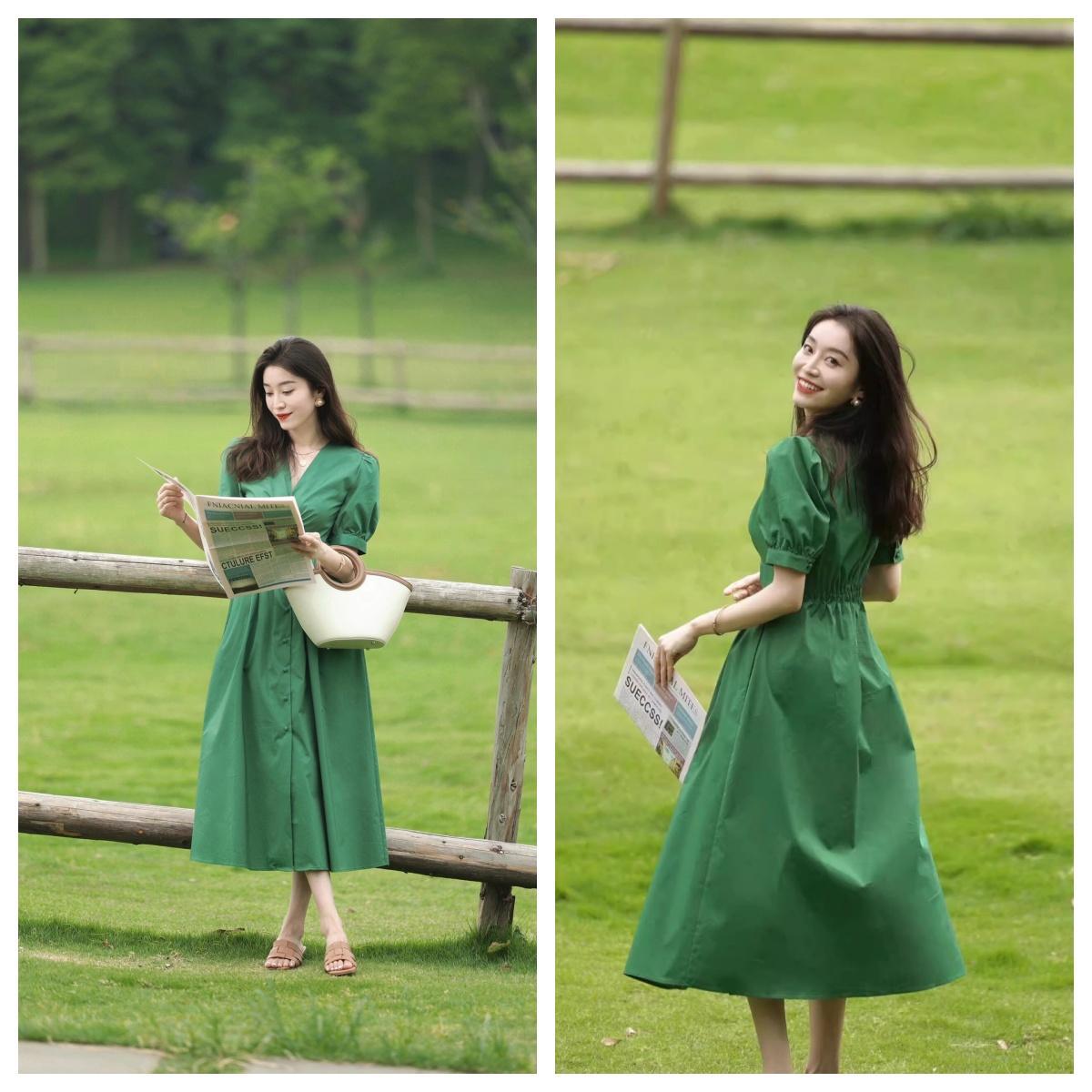 設計亮點:這款連衣裙採用簡潔的V領設計,不僅拉長頸部線條,還在視覺上產生瘦身效果。