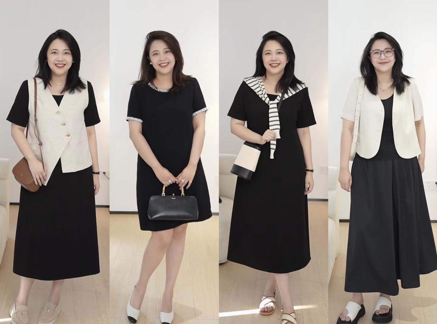 日常的穿搭中,黑色連衣裙/黑色襯衫/黑色T恤,都應該選擇稍微寬鬆的版型,不僅是更遮肉,還更加舒適大方,也很顯氣質。