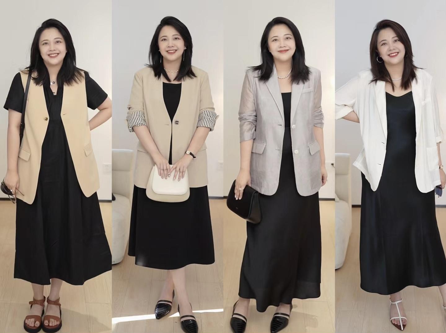 比如經典的黑色連衣裙,款式簡約、流暢的豎條型剪裁,都更加顯瘦一些。上班通勤、或者出席商務活動,搭一件挺闊且寬鬆的西服外套,就具備了女強人的氣場。