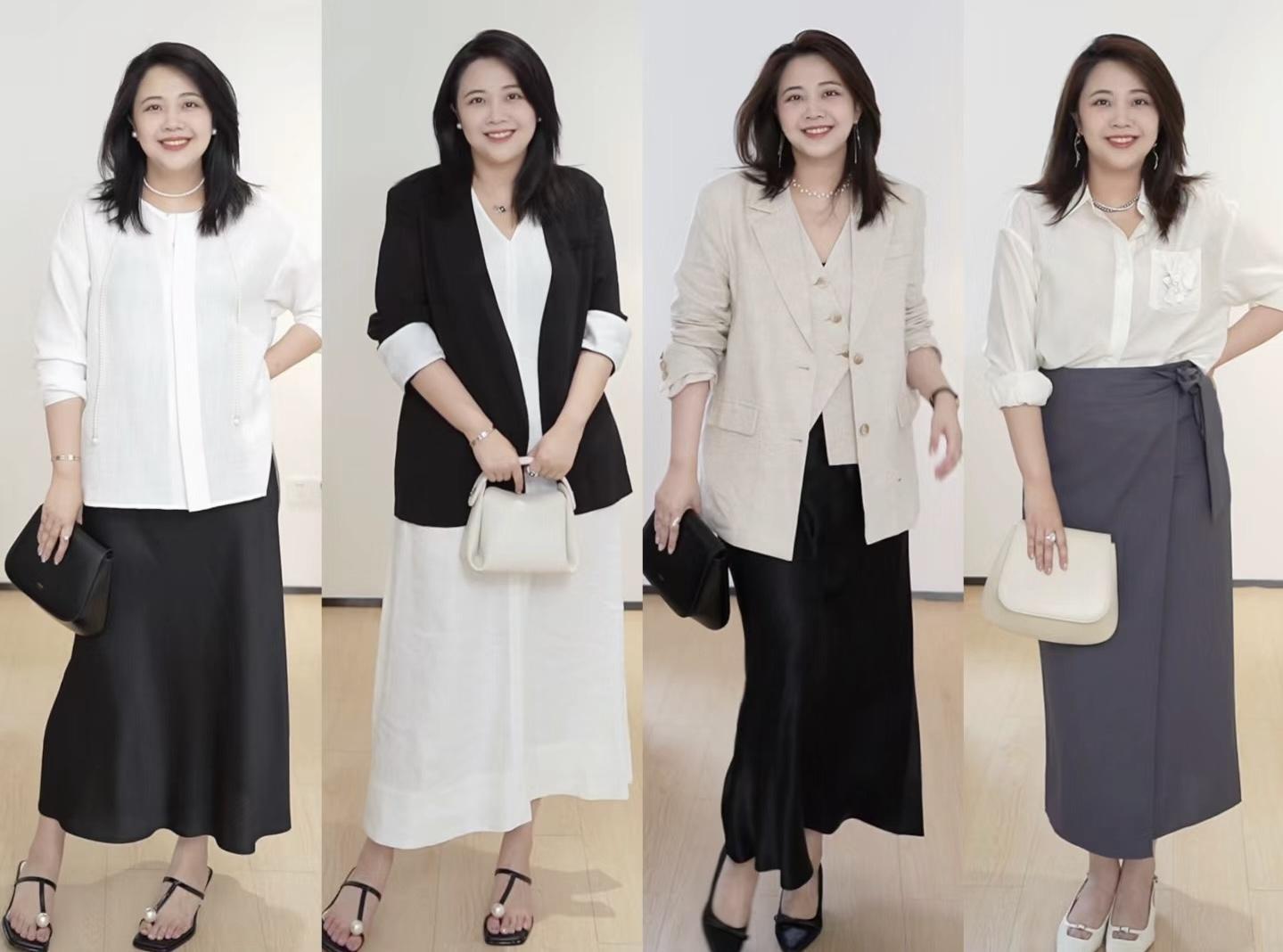 用色彩清爽的白襯衫來搭配高腰的黑色直筒半身裙,經典的黑白配大氣又耐看。黑色半身裙不必選擇太修身的款式,帶有包容性又不顯邋遢。