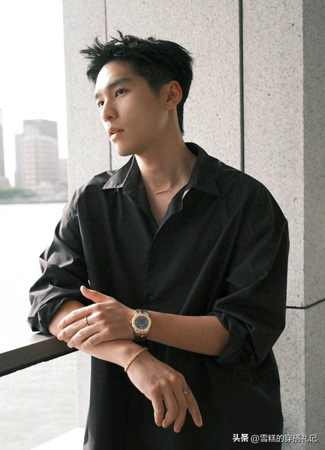 手腕尺寸比較小的男士,就不要選擇錶帶寬、錶盤大的手錶了,換成更合適的手鐲,才能讓整體造型更有美感。