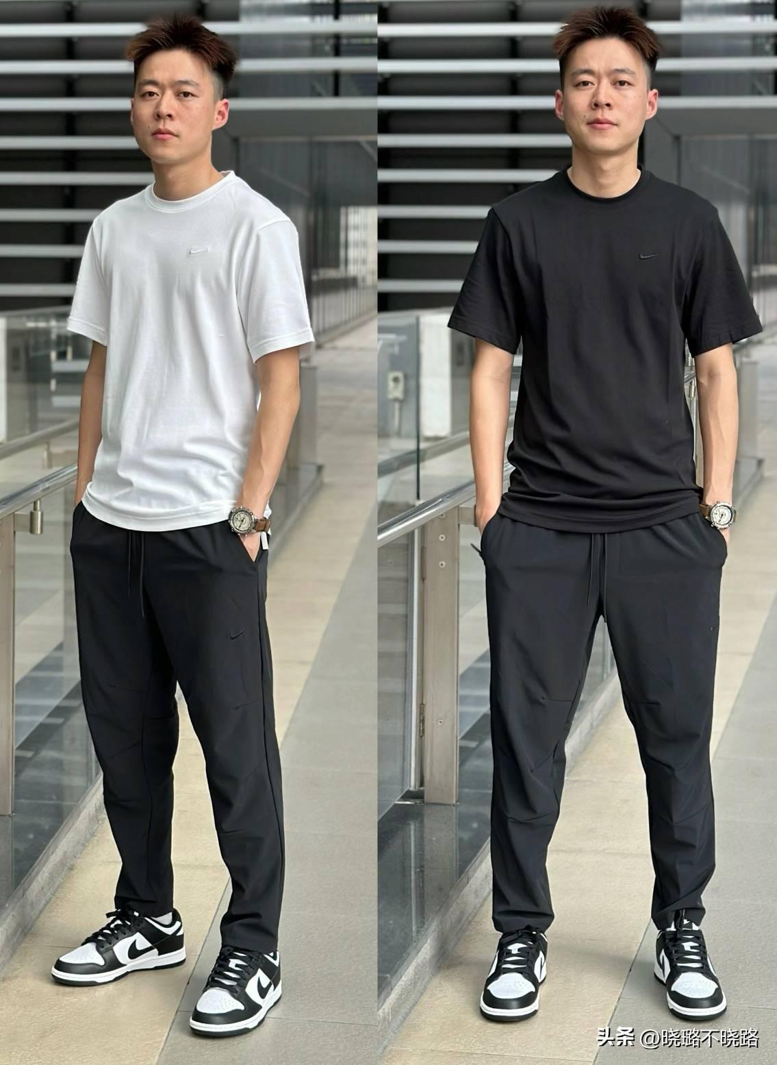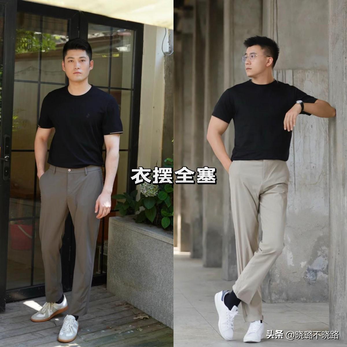 第三種:T 恤+休閒褲(隱藏下身短板)