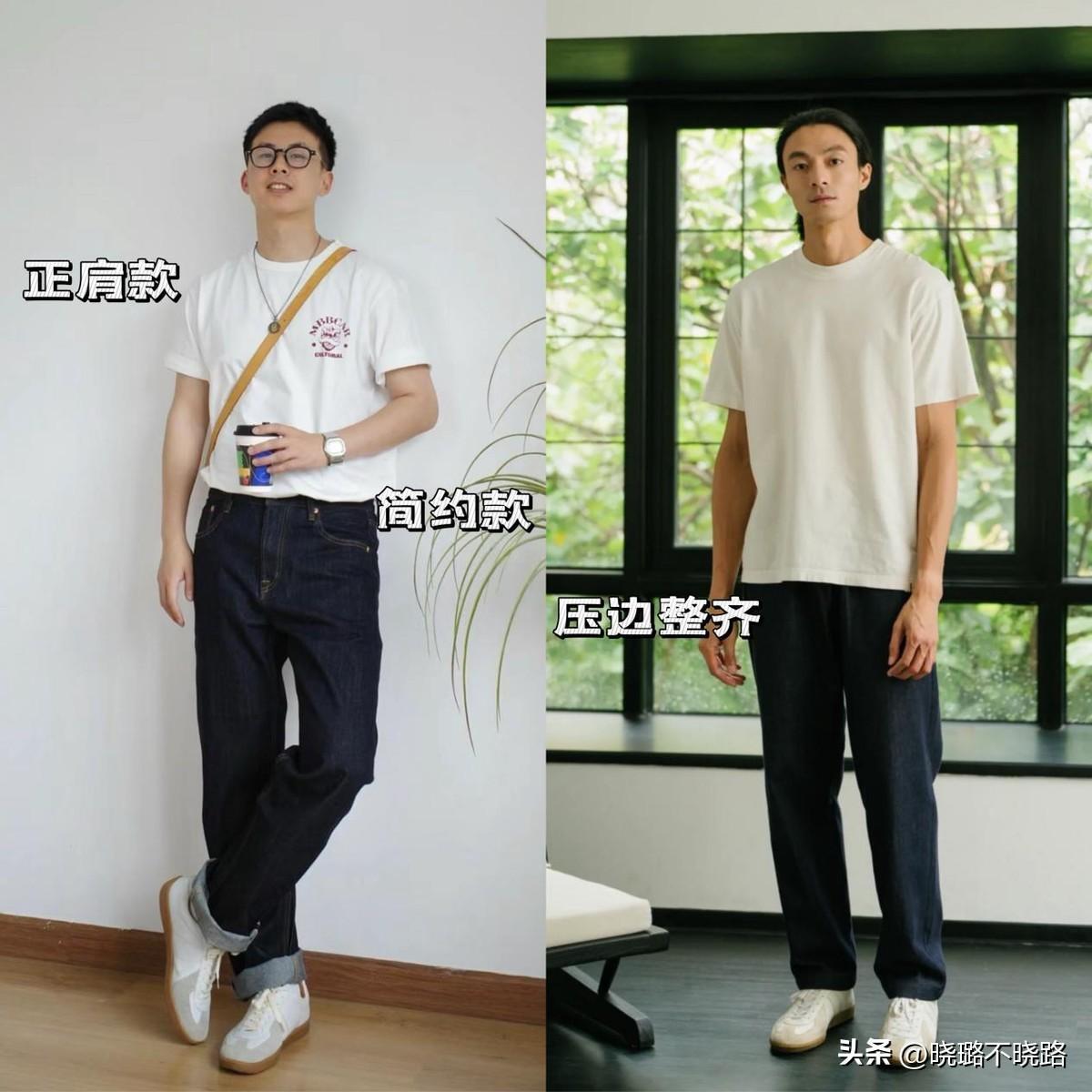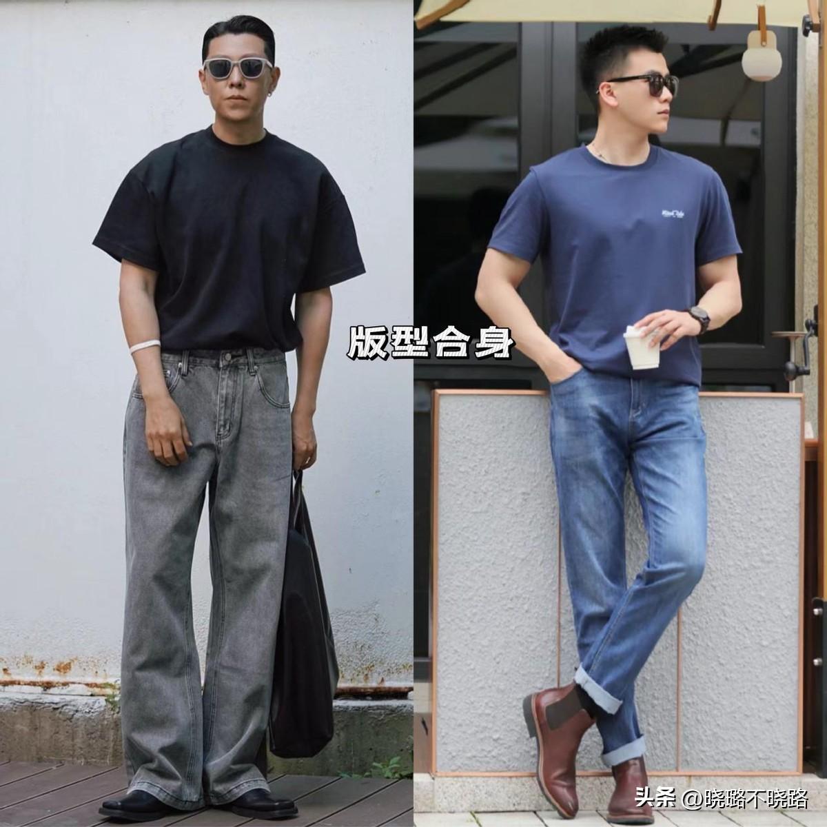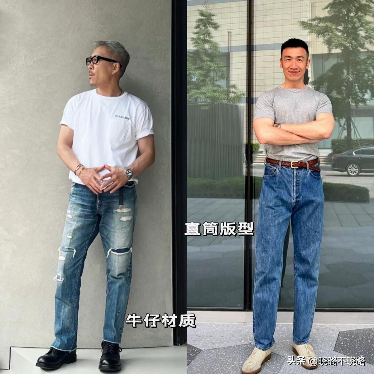 其實,男生T恤不需要太花哨,主打一個乾淨利落即可,所以搭配下裝的時候,牛仔褲就是第一選項,經典款的高腰牛仔直筒褲,配純棉T恤就很耐看。