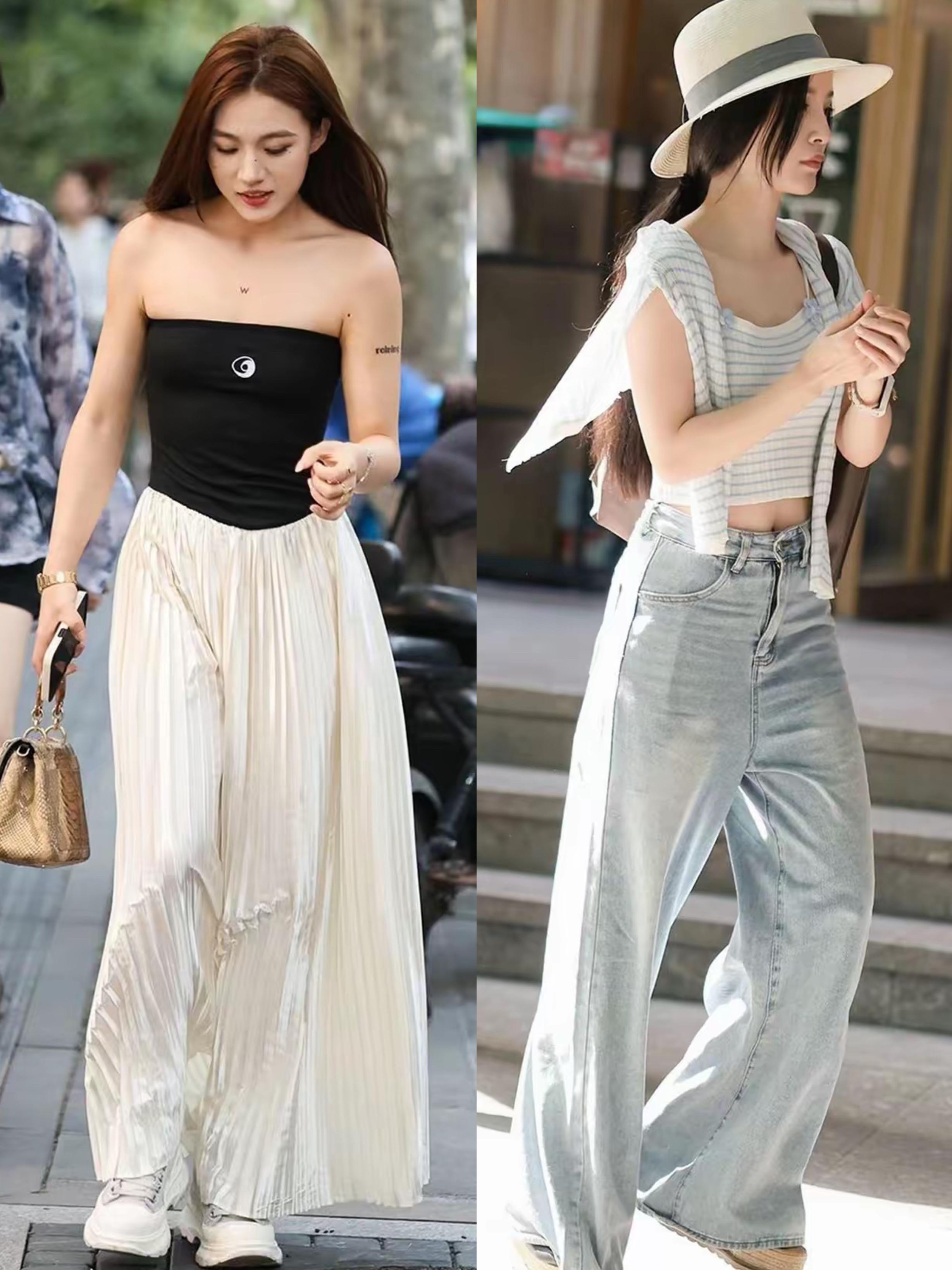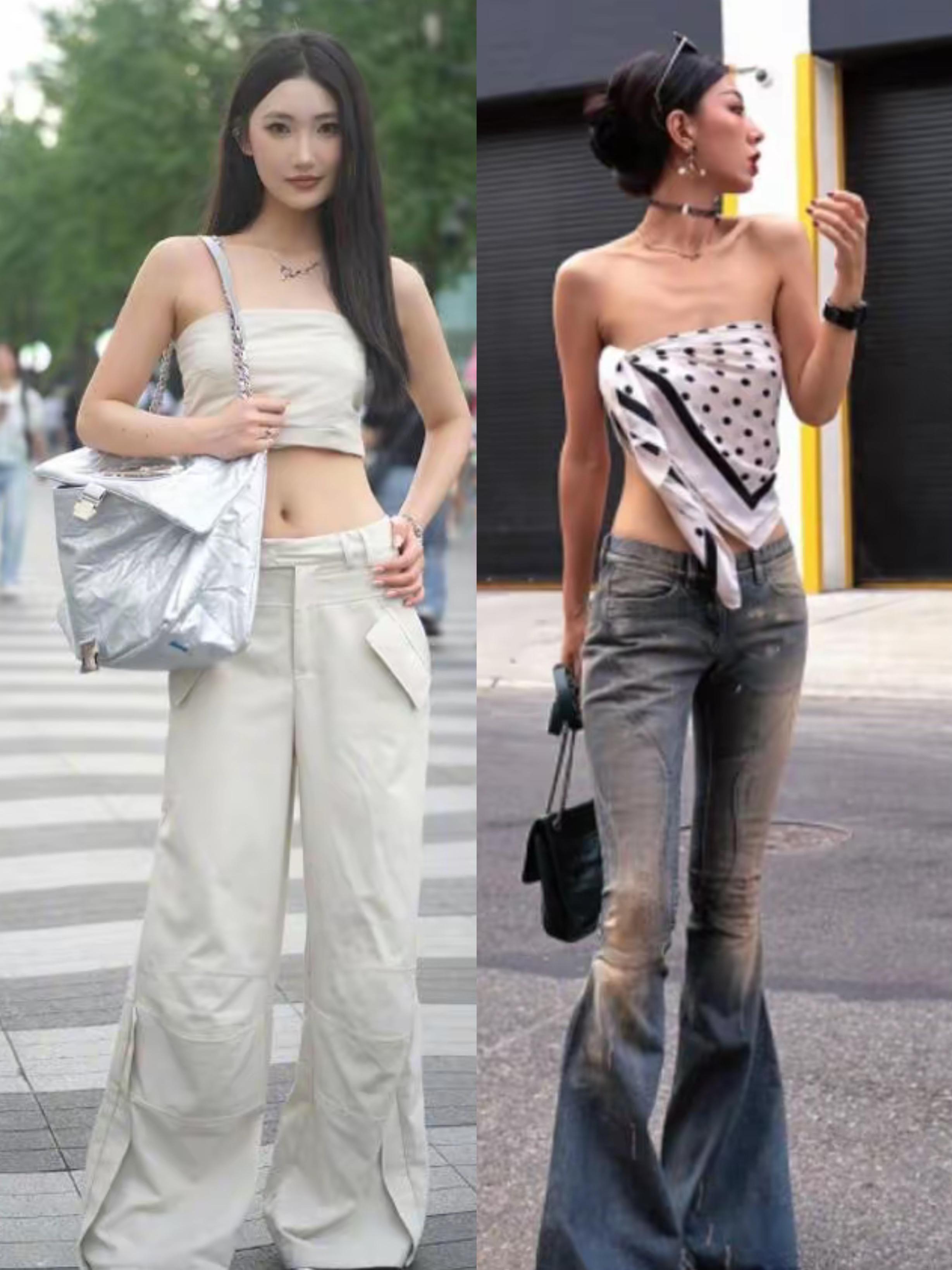時髦熱辣又高級的穿搭,更適合年輕一點的女孩子。抹胸的背心、搭配高腰的拖地褲,就是性感女神的專屬單品。