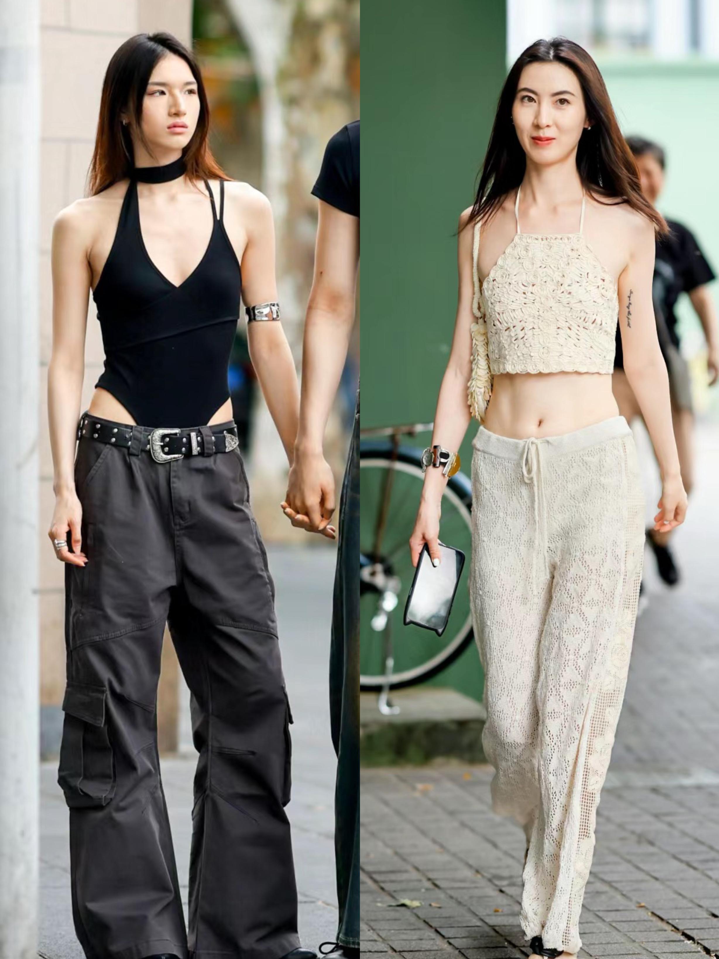 上海街拍真養眼,滿街都是“胸衣+拖地褲”,不遮掩的性感、好美