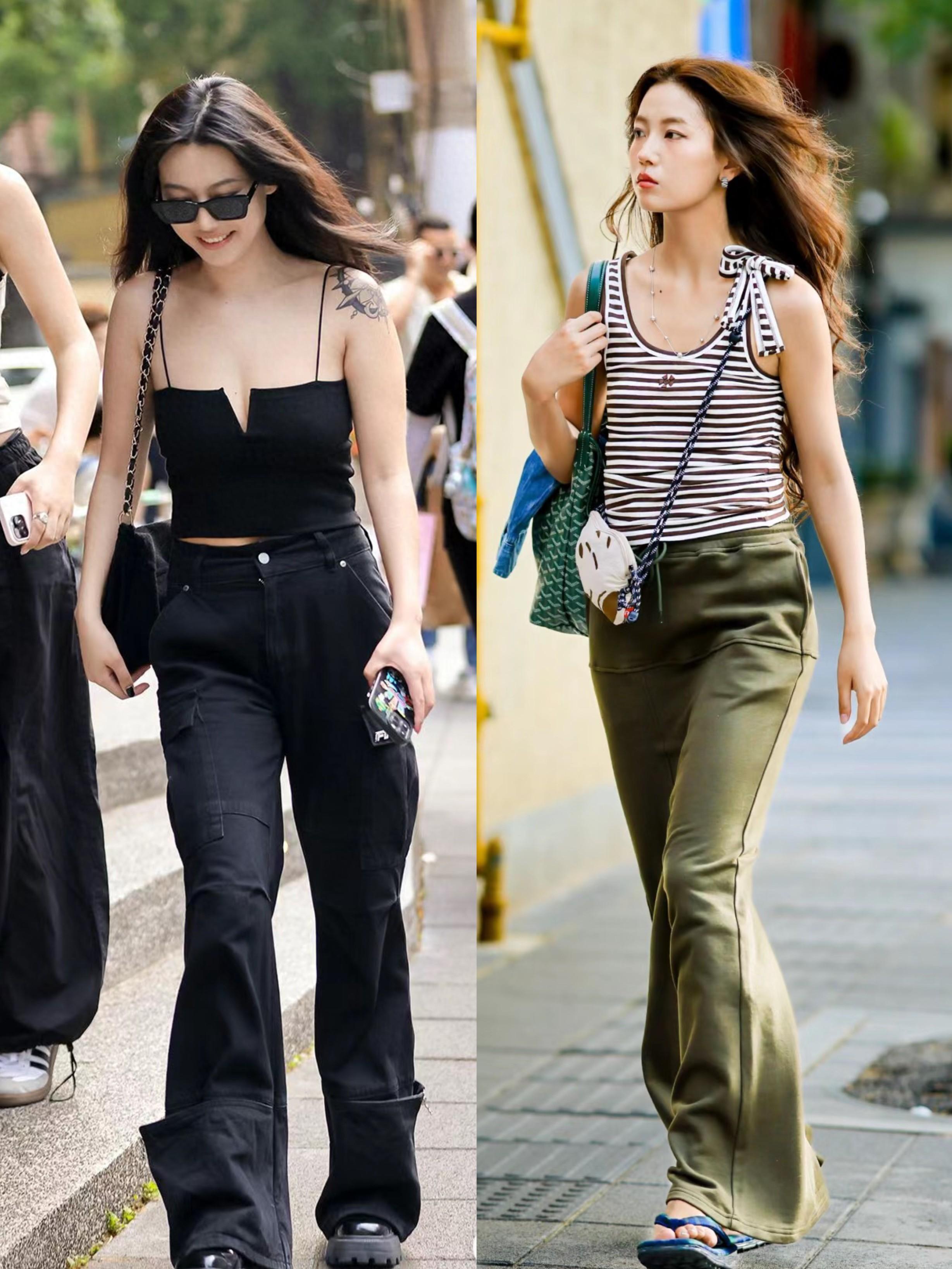 抹胸的上衣、或者露臍的背心,都更加熱辣醒目。基礎一點的露臍背心,秀出平坦的小腹,配一條寬鬆的牛仔闊腿褲,梨形身材也可以大膽穿着。