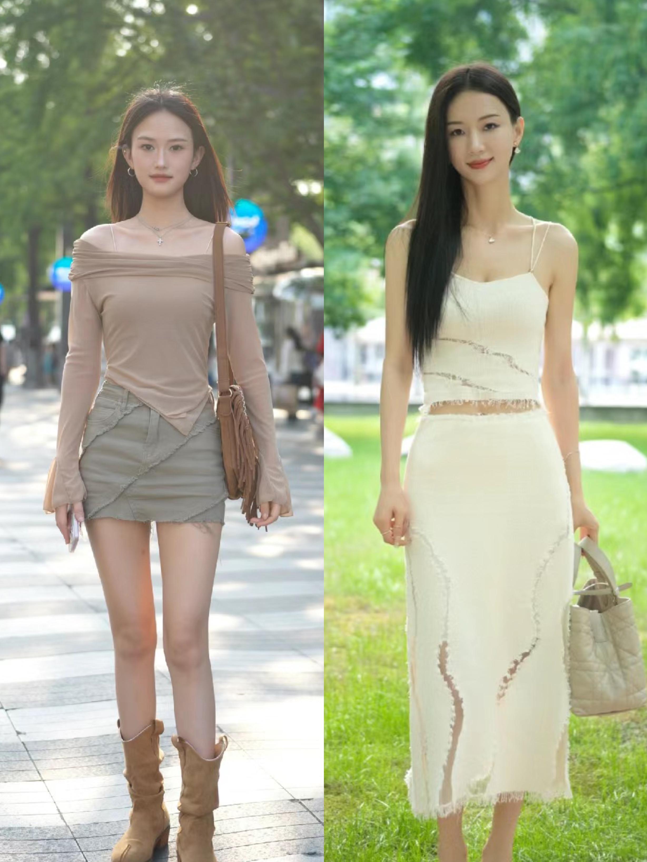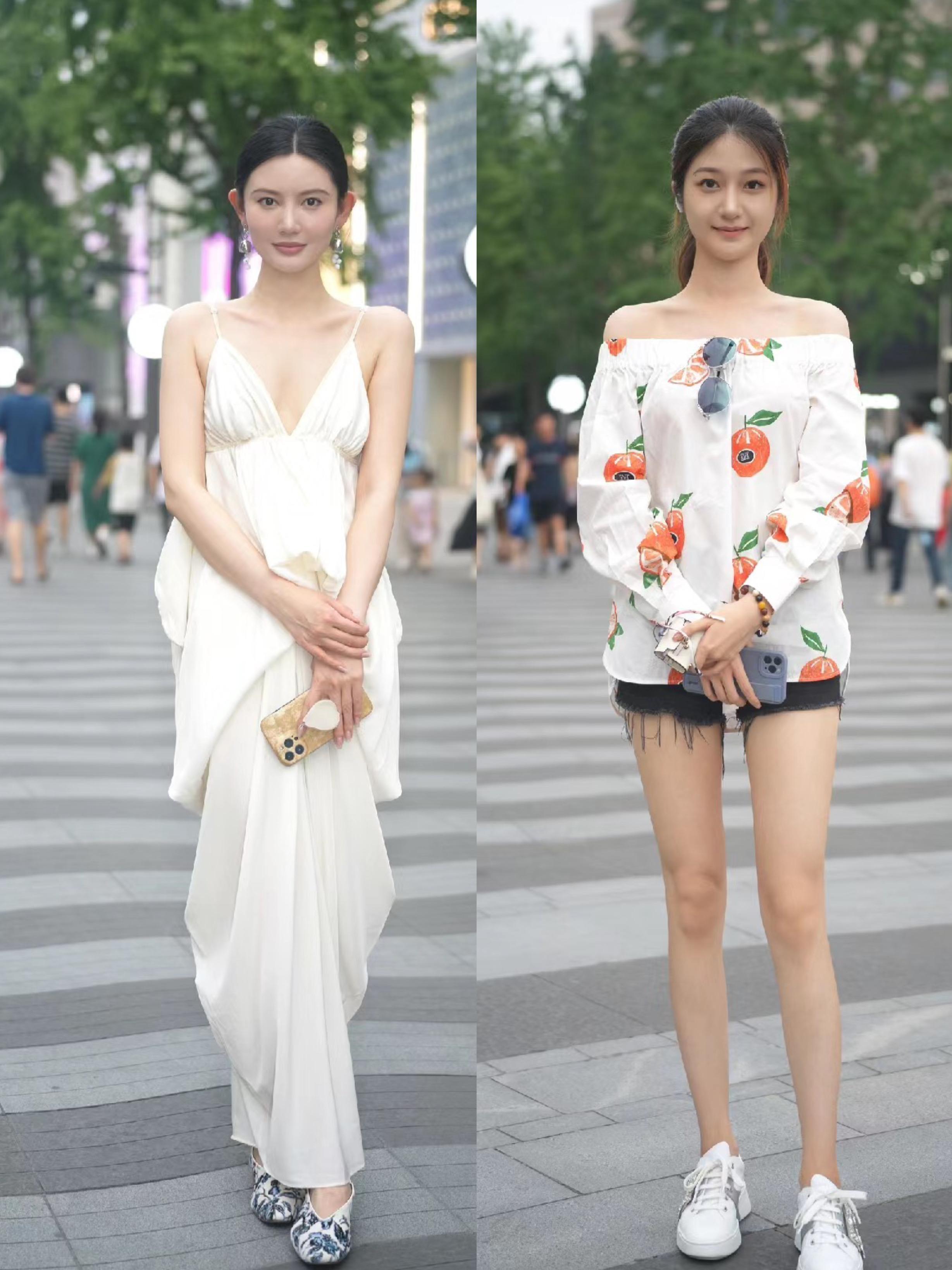 看杭州街拍就明白,清涼感穿搭格外惹眼。尤其是細肩帶的白色吊帶裙,有一種清冷又華麗的美。
