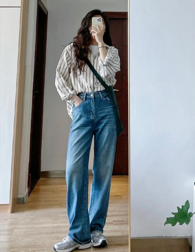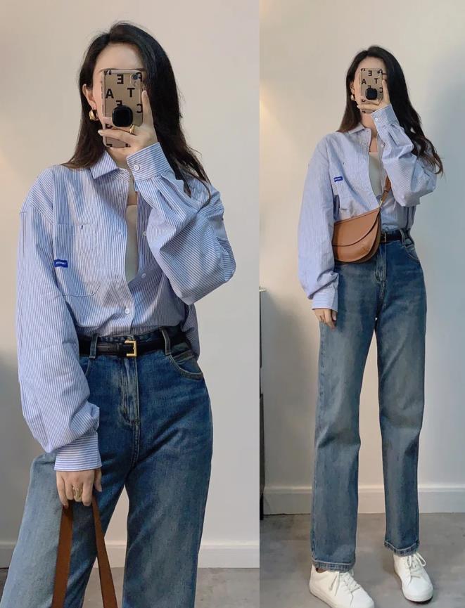 直筒褲除了可以與各種t恤相配之外,還可以選擇各種襯衫搭配一起,就好比如經典的白色襯衫,這種款式的上衣可是最時髦耐看的了,毫不誇張的說就是永遠都不會過時。