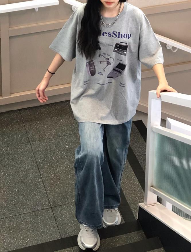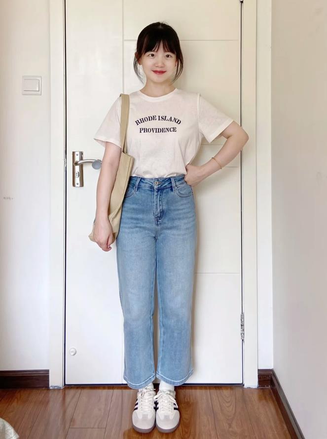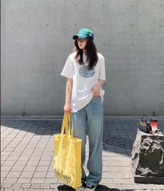 T恤可是最基礎百搭的款式了,它與直筒褲的搭配也是非常不錯的,很耐看舒適的組合,怎麼看都不會覺得膩。像白色t恤就是利用比較多的,如果你覺得太單調的話,可以試試印花、字母的t恤,這樣的穿搭就顯得更趣味一些了。