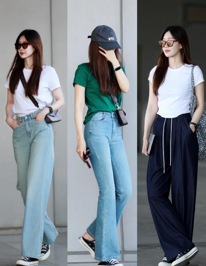 如果你擔心自己膚色駕馭不了這個色調,那麼可以選擇黑色、灰色,這些都是很經典的色調,完全不用擔心會出錯,這些顏色的t恤搭配直筒褲,就有種很簡約高級感。