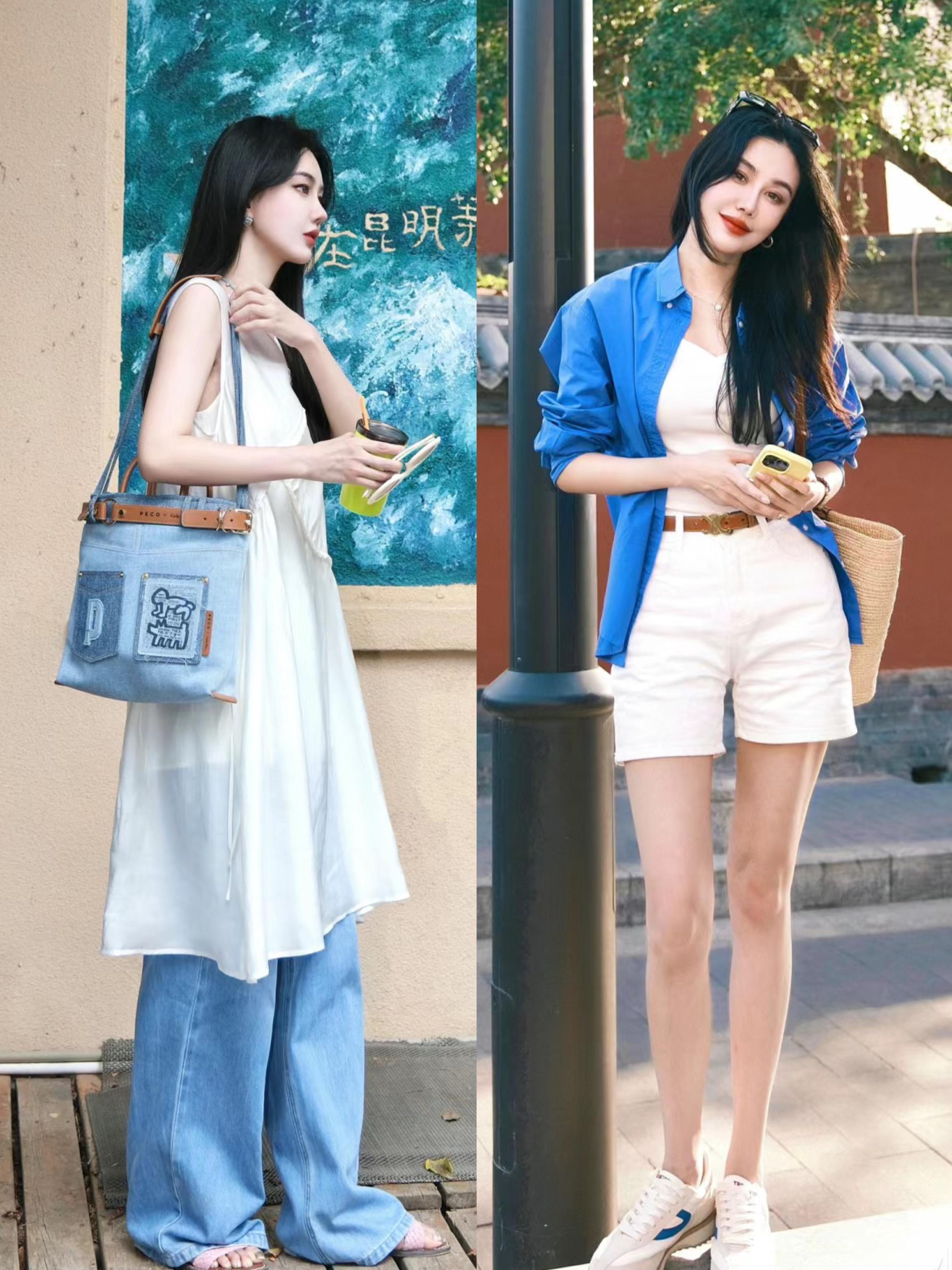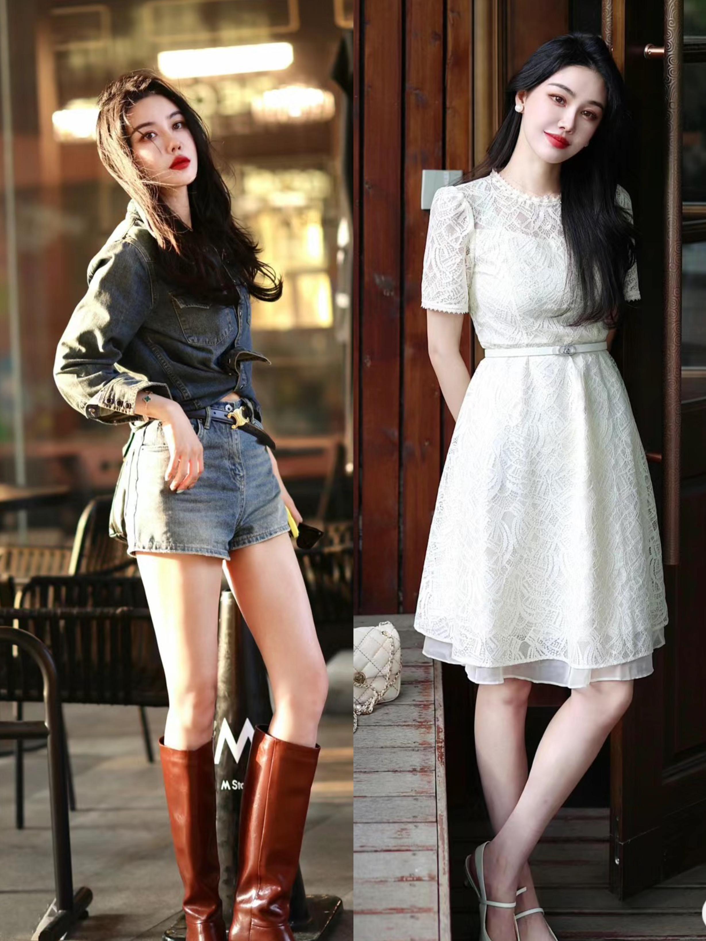 比如一條優雅的蕾絲連衣裙,配腰部收緊的剪裁,精緻考究又很浪漫。牛仔襯衫+牛仔超短褲,就更加酷颯熱辣。不同風格的對比,更展現出30+姐姐的無限魅力。