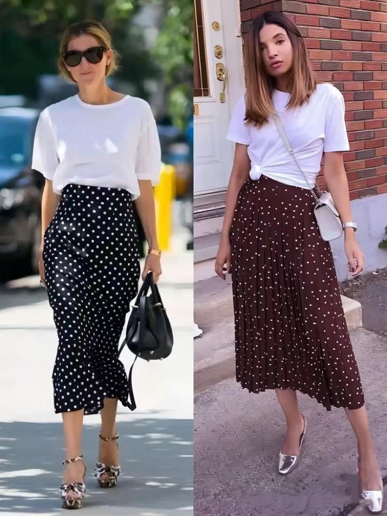 比純色系更時尚,比印花款更素雅,尤其是黑白波點的半身裙,最容易搭配、也更顯氣質了。