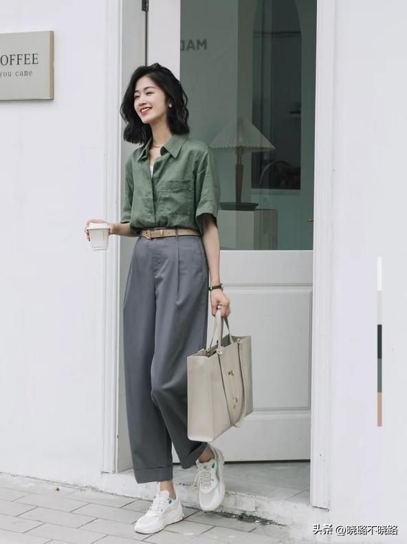 日常生活中的穿搭不必總是將目光放在裙裝中,可以多試試褲子。選擇一件經典款式的襯衫搭配卡布裏褲,襯衫可以選擇低飽和的彩色系,會告別單調和乏味。卡布裏褲選擇高腰的設計,結合腰帶,可以很好的勾勒出我們腰部的曲線美。這套組合隨性而又具有減齡氣息,同時帶着滿滿的活力色彩。