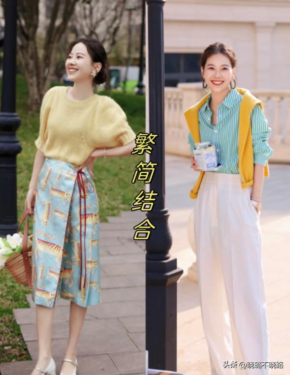 如果不知道怎麼搭配,或者也不確定什麼風格走向的話,我們不妨在色系搭配上運用繁簡結合的方式去打造自我形象。例如選擇純色的上衣搭配印花式樣的裙裝,這樣整體視覺強調出來的吸睛感也是十分強的。或者是採用基礎色的服裝與彩色的服裝互相組合搭配,整體看上去洋氣又不失簡約感。
