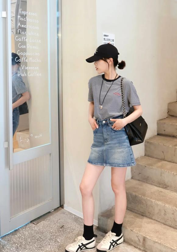 這個夏天,穿t恤配牛仔半裙可是很耐看的,可以很好展現出自由與隨性,也能爲你打造出一種休閒又時尚的造型。在悶熱的夏季裏,t恤的材質記得入手透氣些,再搭配一條高腰牛仔半裙,就很好將下身的比例給拉長了。