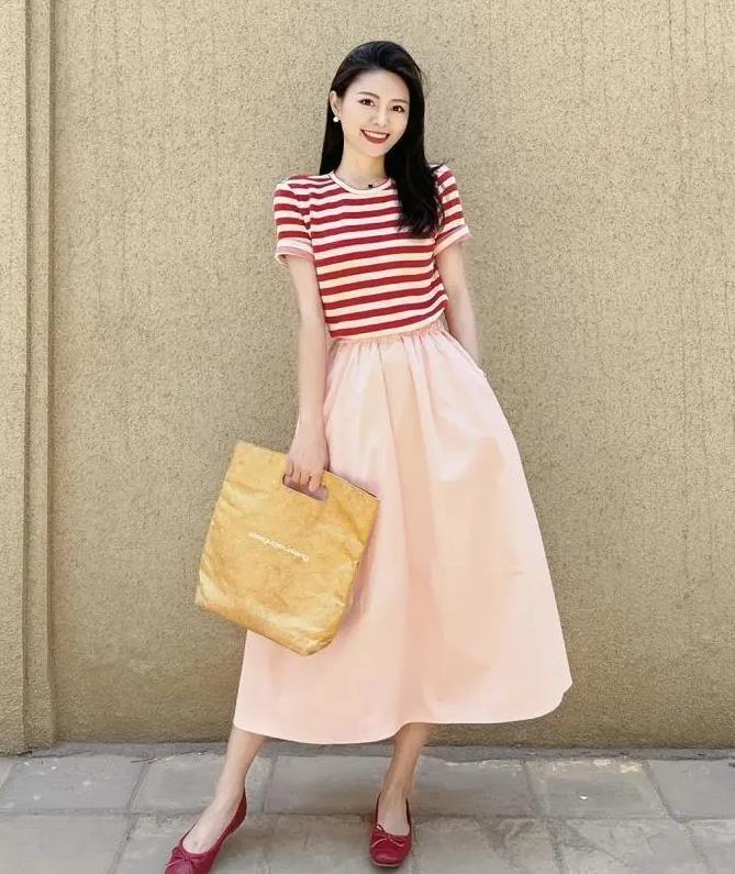 真的太好看的一套穿搭了,法式風滿滿,條紋短袖t恤+半身傘裙,氛圍感直接拉滿的一套,紅白相間的條紋短袖t恤,這個色調真的很難讓人拒絕,下身的裙子,版型就是爲梨形身材量身定製的,可顯瘦藏肉了。