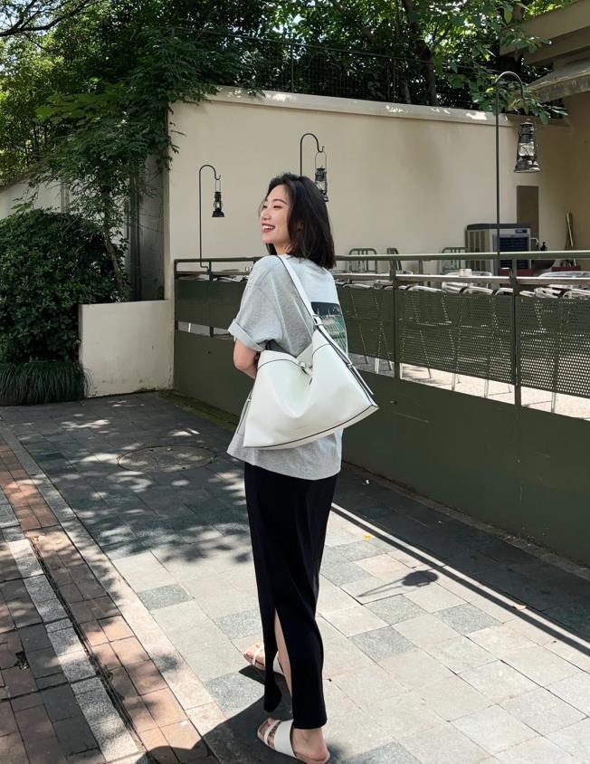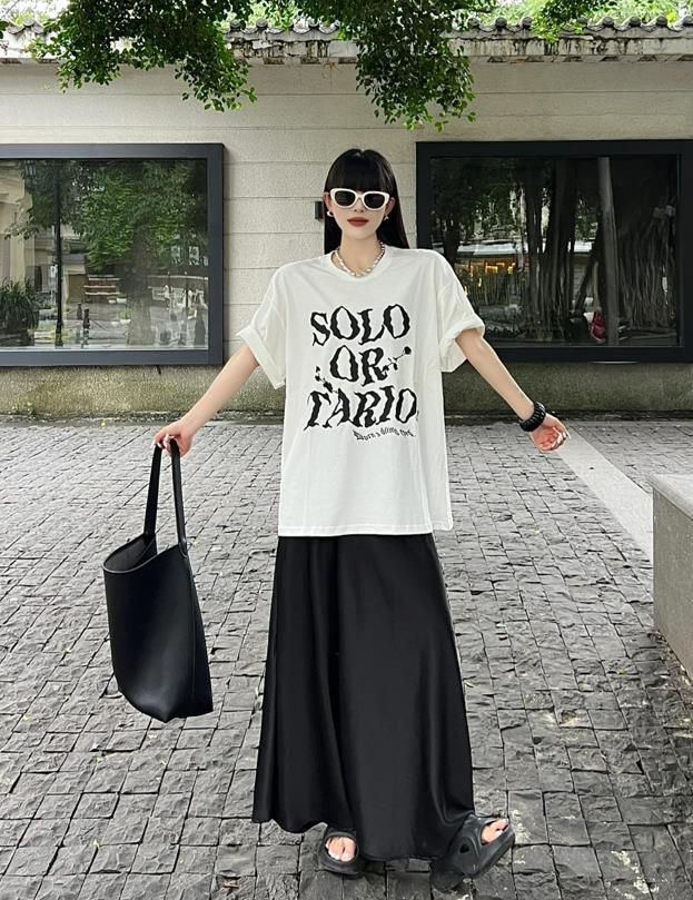 黑色系的穿搭,在夏季裏就一定會顯得悶熱嗎?純色圓領短袖t恤+開叉碎花半身長裙,這麼一身看起來也太顯瘦顯高了,完全不挑人的,屬於誰穿誰好看的組合。