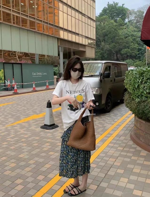 白色印花短袖t恤+碎花半身長裙,這一套看起來既不失日常又隨性,看着普普通通的,可這麼組合在一起,卻很好看。隨意拍拍都很上鏡,出門隨便踩着一雙涼拖鞋就ok了。