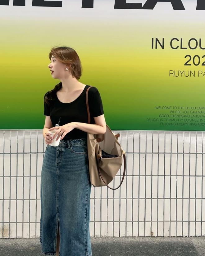 當你在夏日裏不知道該選擇什麼樣的衣服來穿時,t恤和牛仔半裙這一對組合,可是最基礎耐看和時髦的,當然了,將這兩種單品搭配一起,也是非常減齡和顯青春的,不管是在日常逛街,還是上班通勤都可。