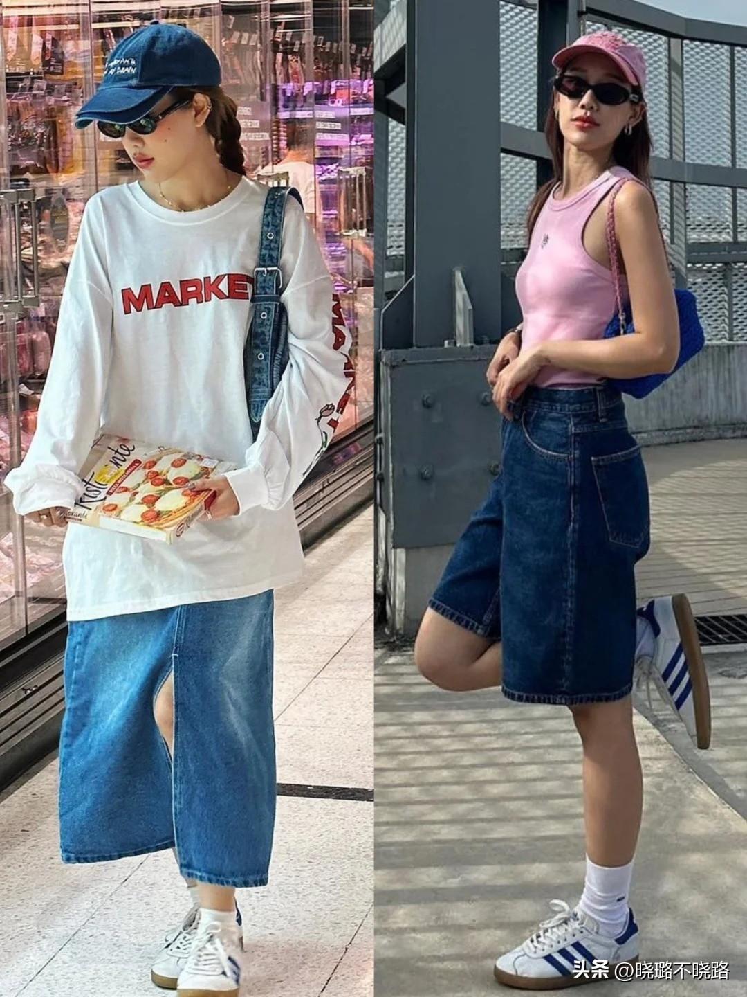 如果是裙子和“德訓鞋”的組合,裙子要是過膝不過踝的系列,建議挑選直筒類,這樣能最大程度拉高縱向的線條感。
