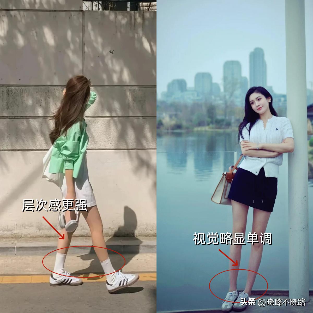 ①學會露膚,強化層次與留白 鞋子和服裝之間的過渡咱們需要像這樣採用一個露膚的方法來進行承接。如果是褲裝的話,就露出纖細腳踝;如果是裙裝的話,尤其要配合好裙子的長度與鞋子進行結合。
