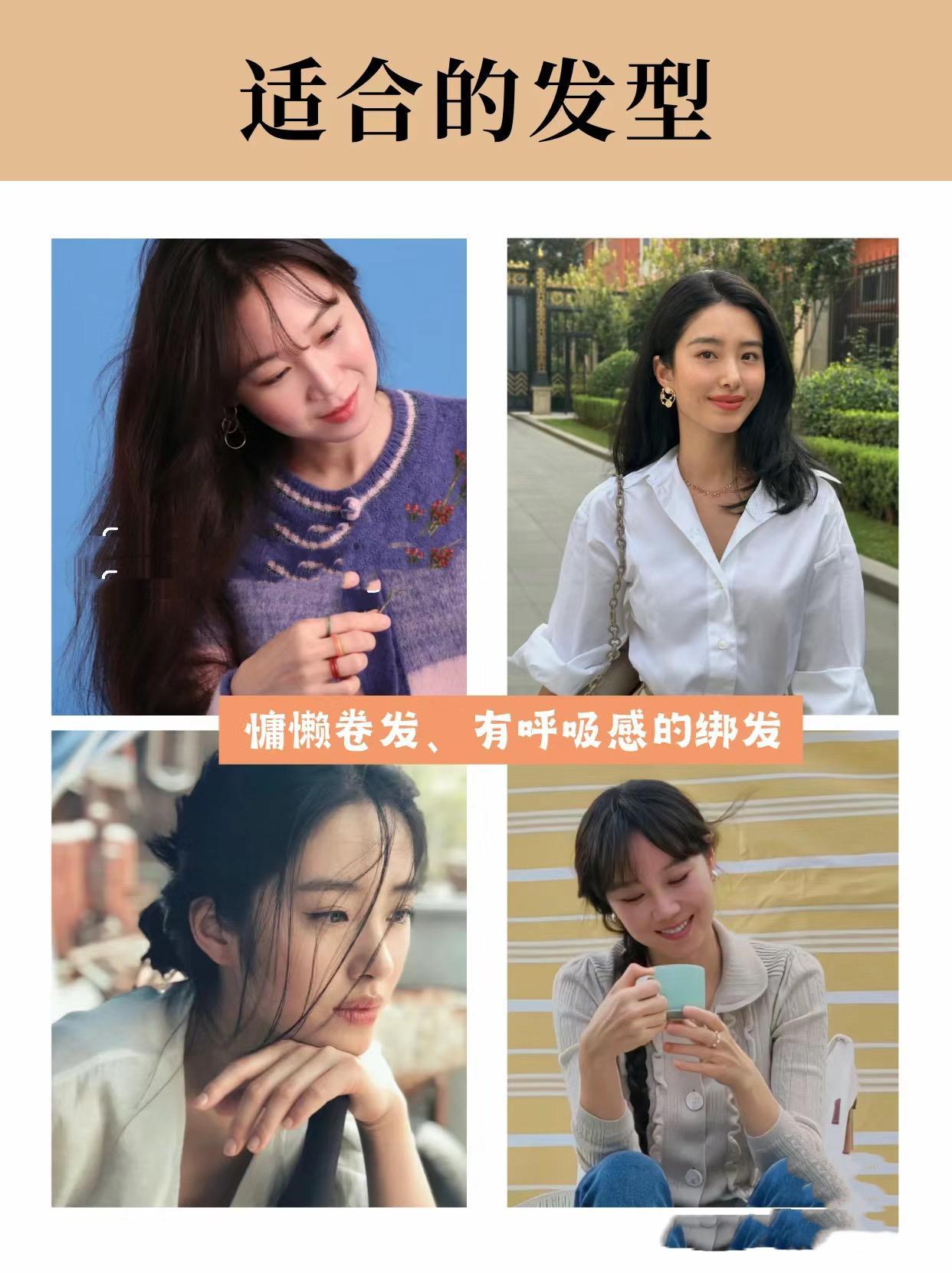 避開大背頭、或者太生硬的扎發,儘量給我們的髮型營造出呼吸感。適當微卷、但不要嘗試羊毛卷。波浪卷、水波紋都是不錯的選擇。